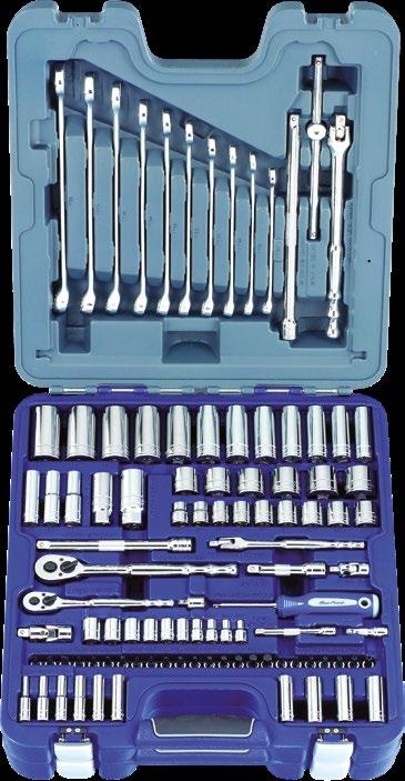 • Includes (23) SAE and Metric 1/4" Standard Depth Sockets, (32) SAE and Metric 3/8" Drive Sockets, (11) External TORX® Sockets, (19) SAE and Metric Combination Wrenches, (7) 1/4" drive and (8) 3/8" drive accessories in a storage case