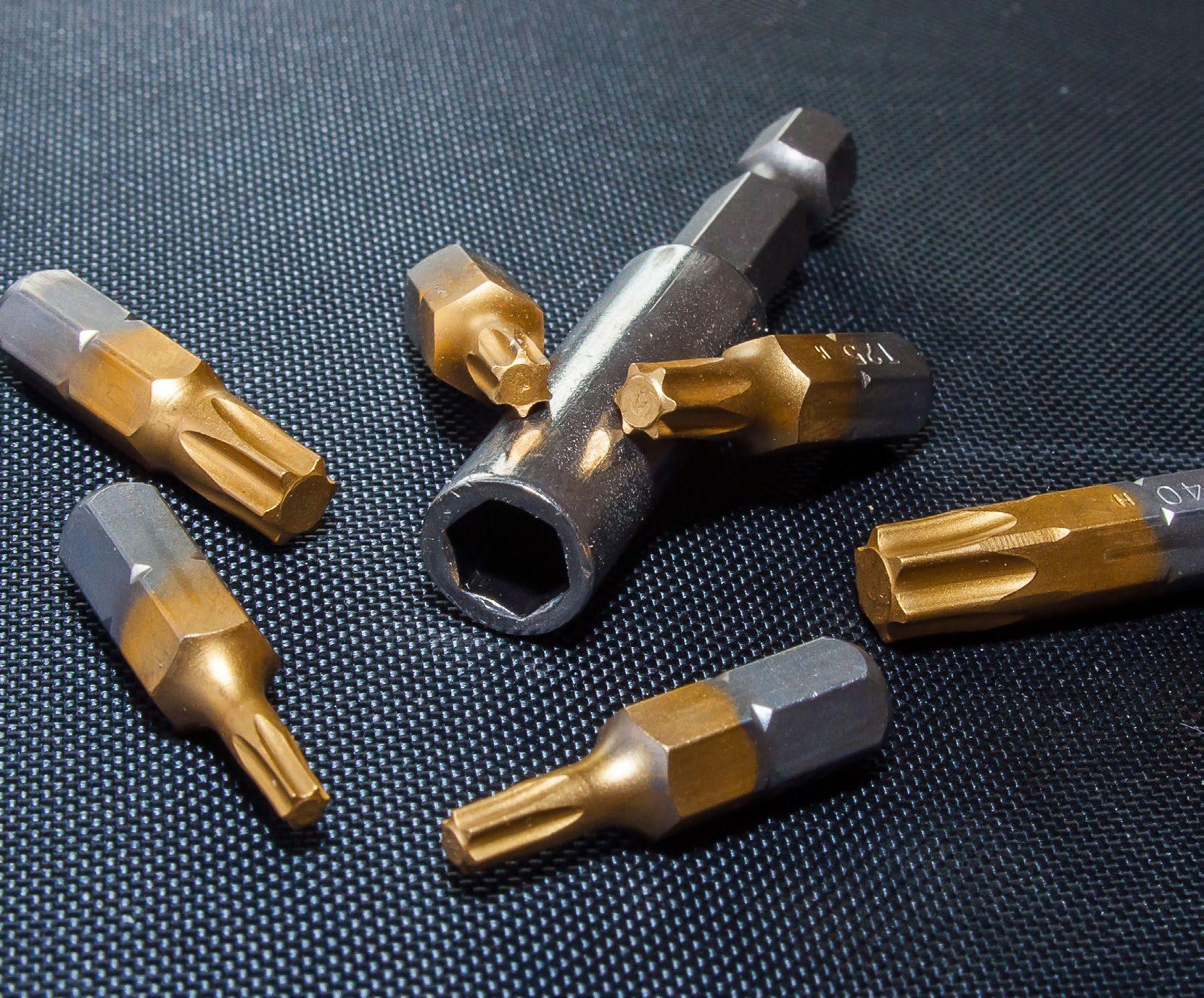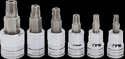 • 1/4" drive components include (5) External Sockets (E4–E8); (10) Tamper-Resistant TORX® Bit Sockets (T6–T30) and (10) TamperResistant TORX® Long Bit Sockets (T6–T30)