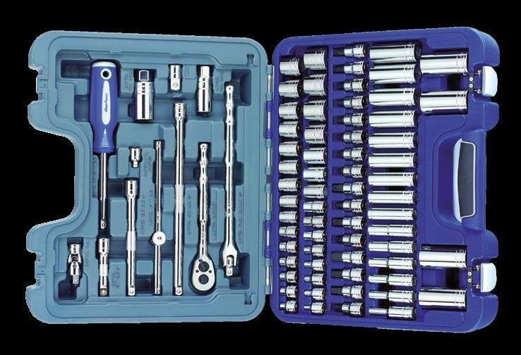 • 1/2" drive components include (4) External TORX® Sockets (E18-E24), (2) TORX® Bit Sockets (T55, T60), (2) Long TORX® Bit Sockets (T55, T60), (5) Metric Hex Bit Sockets (10-19 mm) and (5) Hex Bit Sockets (7/16-3/4")