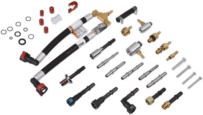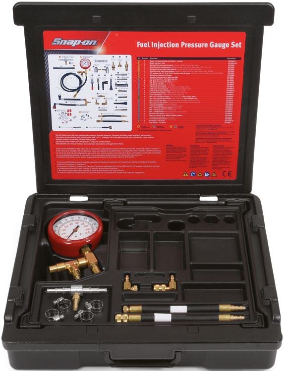 • Set contains a tee manifold with a shutoff valve, a 3-1/2" diameter gauge assembly with a blowdown valve and the adaptors needed to test most fuel injection systems