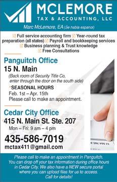 BOXHOLDER ALL content for THE WAYNE & GARFIELD COUNTY INSIDER MUST BE submitted by FRIDAY AT NOON to be included in the following Thursday edition of the paper. PRE-SORT STANDARD PAID RICHFIELD, UTAH PERMIT No. 122 Puns are the highest form of literature. —Alfred Hitchcock REGIONAL WEATHER FORECAST FOR SOME BUT NOT ALL REGIONS REPRESENTED IN OUR NEWSPAPER COVERAGE AREA THURS. JAN. 5 - WED. JAN. 11 High chances of snow showers on Thursday lower throughout the rest of the week. Partly cloudy, with highs in the 30s and low 40s; lows in the teens and 20s. Thursday, January 5, 2023 Issue # 1494 insiderutah.com UPCOMING EVENTS... 2023 Panguitch Ice Fishing Derby Feb. 4, 2023 6:00 AM - 3:00 PM Weigh-in: 3:00 to 4:30 PM at Two Sunsets Hotel **Weather is subject to Change Martin Luther King Jr. Day 2023 Jan. 16, 2023 Insider The Serving Wayne & Garfield Counties, Utah Loa • Fremont • Lyman • Bicknell • Teasdale • Torrey • Grover • Fruita • Caineville • Hanksville Panguitch • Panguitch Lake • Hatch • Antimony • Bryce • Tropic • Henrieville • Cannonville • Escalante • Boulder Courtesy Shawn Caine