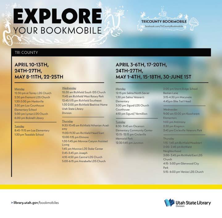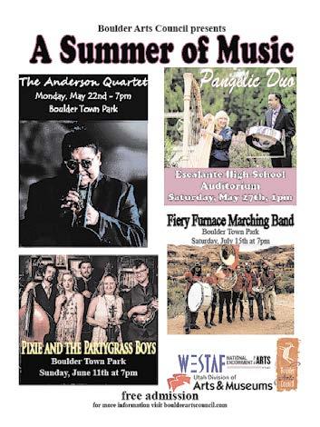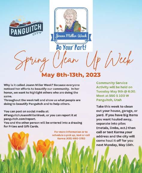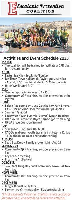 BOXHOLDER ALL content for THE WAYNE & GARFIELD COUNTY INSIDER MUST BE submitted by FRIDAY AT NOON to be included in the following Thursday edition of the paper. PRE-SORT STANDARD PAID RICHFIELD, UTAH PERMIT No. 122 Maybe that’s what life is…a wink of the eye and winking stars. —Jack Kerouac REGIONAL WEATHER FORECAST FOR SOME BUT NOT ALL REGIONS REPRESENTED IN OUR NEWSPAPER COVERAGE AREA THURS. MAY 4 - WED. MAY 10 Mix of clouds and sun again this week, with 50% chance of rain on Thursday. Highs in the 50s and 60s; lows in the 20s and 30s. Winds variable from 12 to 18 mph. Thursday, May 4, 2023 Issue # 1511 insiderutah.com UPCOMING EVENTS... 3rd Annual Wild Potato Days May 26 & 27, 2023 Escalante, Utah **Weather is subject to Change Insider