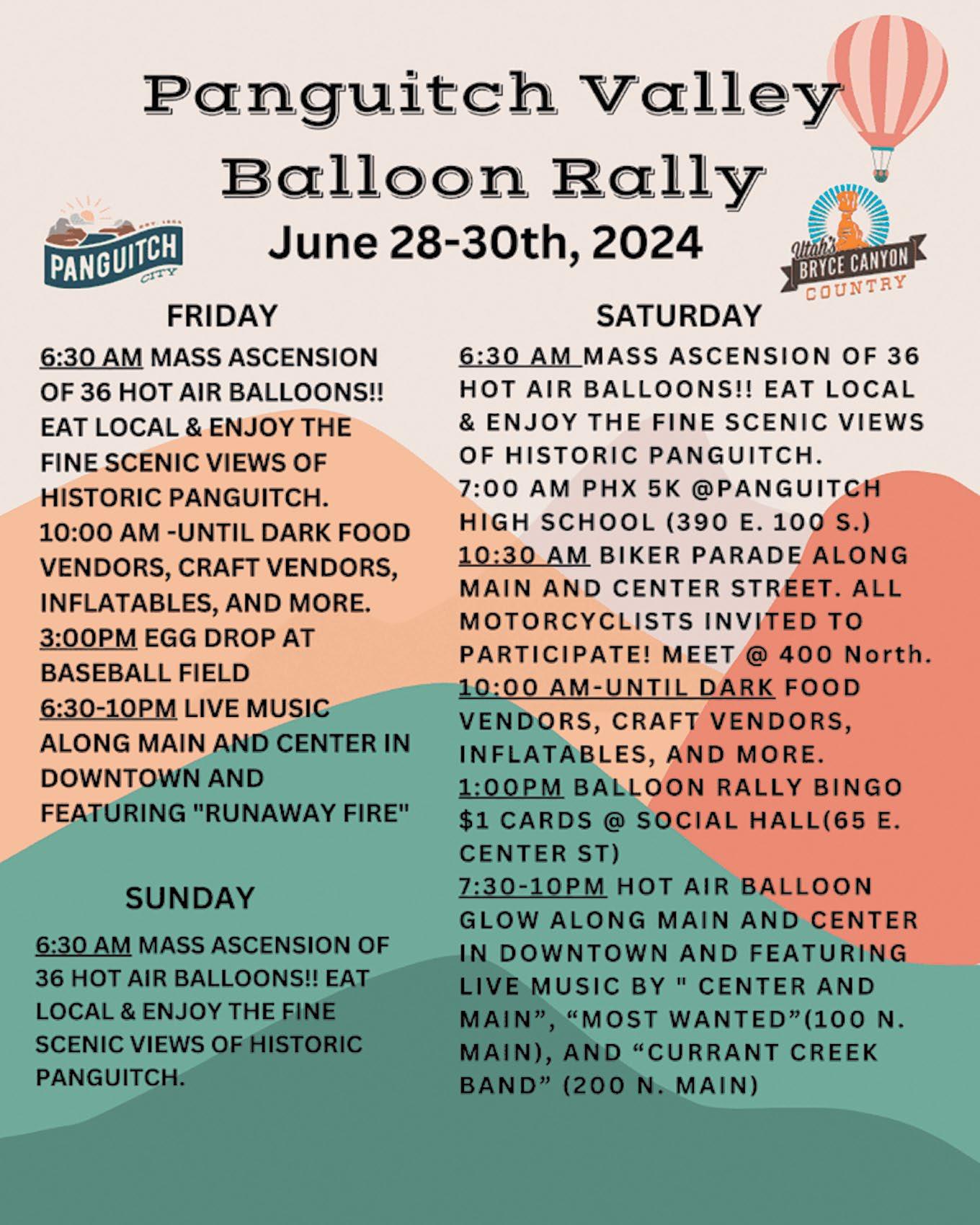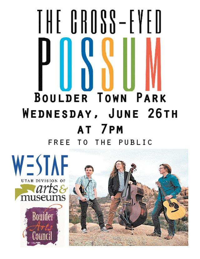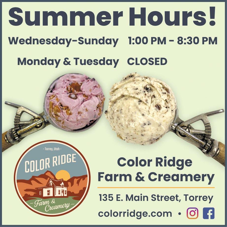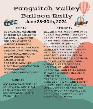 BOXHOLDER ALL content for THE WAYNE & GARFIELD COUNTY INSIDER MUST BE submitted by FRIDAY AT NOON to be included in the following Thursday edition of the paper. NONPROFIT US POSTAGE PAID RICHFIELD, UTAH PERMIT No. 122 Never miss a good chance to shut up. —Will Rogers REGIONAL WEATHER FORECAST FOR SOME BUT NOT ALL REGIONS REPRESENTED IN OUR NEWSPAPER COVERAGE AREA THURS. JUNE 20 - WED. JUNE 26 Mostly sunny with temperatures increasing through the weekend and into next week. Highs from the mid 80s to the low 90s; lows in the high 40s to low 50s. **Weather is subject to Change Corner Post Media, P.O. Box 105, Escalante, UT 84726 Issue #1568 insiderutah.com Insider Serving Wayne & Garfield Counties, Utah Bicknell • Teasdale • Torrey • Grover • Fruita • Caineville • Hanksville Panguitch • Panguitch Lake • Hatch • Antimony • Bryce • Tropic • Henrieville • Cannonville • Escalante • Boulder UPCOMING EVENTS... Panguitch Valley Balloon Rally June 28 - 30 Panguitch, Utah Torrey Apple Days July 5 - 6 "Two Days of Family Fun" Jun. 10, 2024 Garfield County Commission Garfield Commission Cont'd on B4
