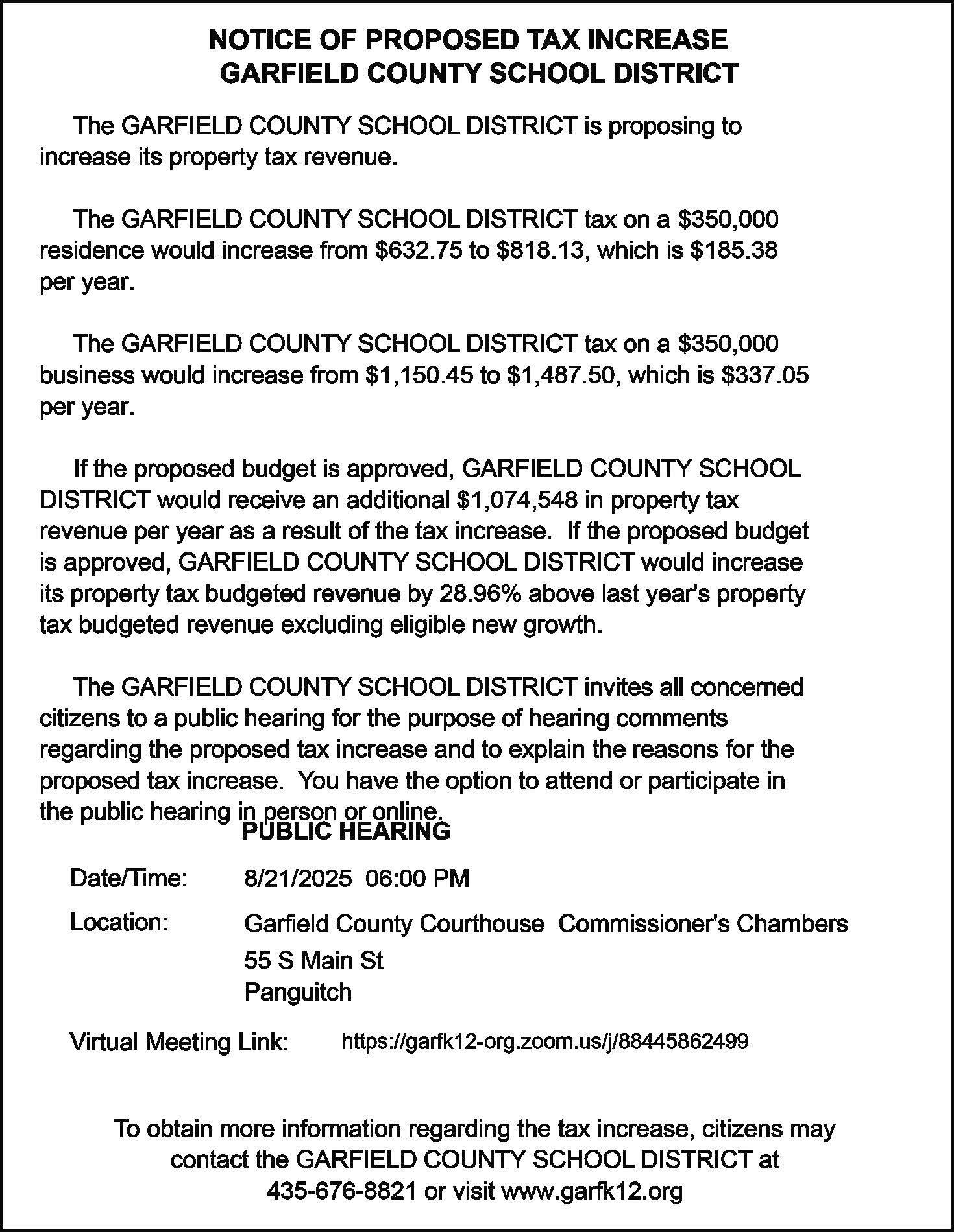 POSITIONS AVAILABLE: Garfield County School