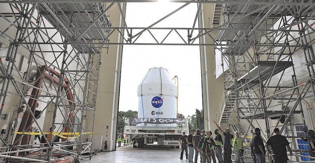 NASA’s Artemis II Orion spacecraft arrives at the Launch Abort System Facility at the agency’s Kennedy Space Center in Florida on Sunday, Aug. 10, 2025.