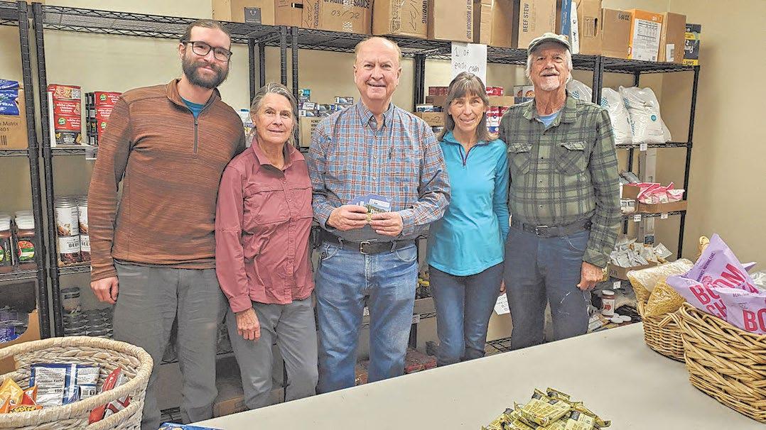Danny Emerich, Joanne Stenten, Linda Ward and Bernie Wuestefeld, representing Rural Voices of Utah, hand over Royal's Foodtown gift cards to Mike Riddle (center) at the Wayne County food pantry after a potluck fundraiser in Torrey on Dec. 6 netted $9,700 in donations.
