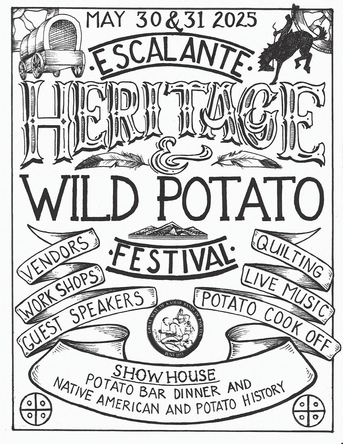 The Escalante Heritage and Wild Potato Festival will be held at Escalante Heritage Park on May 30-31. On Friday, the festivities will kick off with a cowboy parade at 8:00,