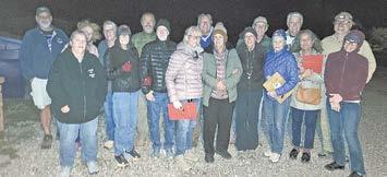 The September 2025 Fall Night Sky Monitoring group on Sept. 22. Back row is Scott Schelin, Karen Davenport Rohr, Pearl Thorndal-Stewart, Christoph Luty, Gary Pankow, Dave Cushing, Rod Frazier, and John Lee. Front row is Mary Schelin, Shari Zinik, Steve Zinik, Nancy Talcott-Luty, Anne Macey, Susan O'Connor-Wright, Jean Morrell, Susan Snow, and Linda Peer.