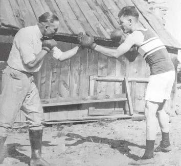 hint of his being affected by his opponents’ reception. The crowd was accustomed to his demeanor. It reflected his confidence, and it sent the crowd into a frenzy of boos, cat calls and raised fists. With hands the size of a dinner plate, Wiff Torgerson gave a smiling salute to the screaming fans as he lowered his heavy, towering frame through the ring ropes for the first round. His handlers reasoned it was best to begin with the larger brother, hoping to put the fear of the almighty into Balle as the brother towered above him and nearly doubled him in weight. The strategy was understood and agreed to by the fans. Throughout the first round, Balle capably avoided the few blows which, if any of them had connected, could have put him, not just out of the ring, but out of the hall. Such hard-thrown blows had the effect of also causing the brother to lose balance and be in position for the studied, well-placed punishing blows of Balle. Almost from the beginning of the fight, each brother would be so winded at the end of his round he could hardly exit the ring. Balle, on the other hand, would appear unaffected and grin a greeting to each brother in turn.