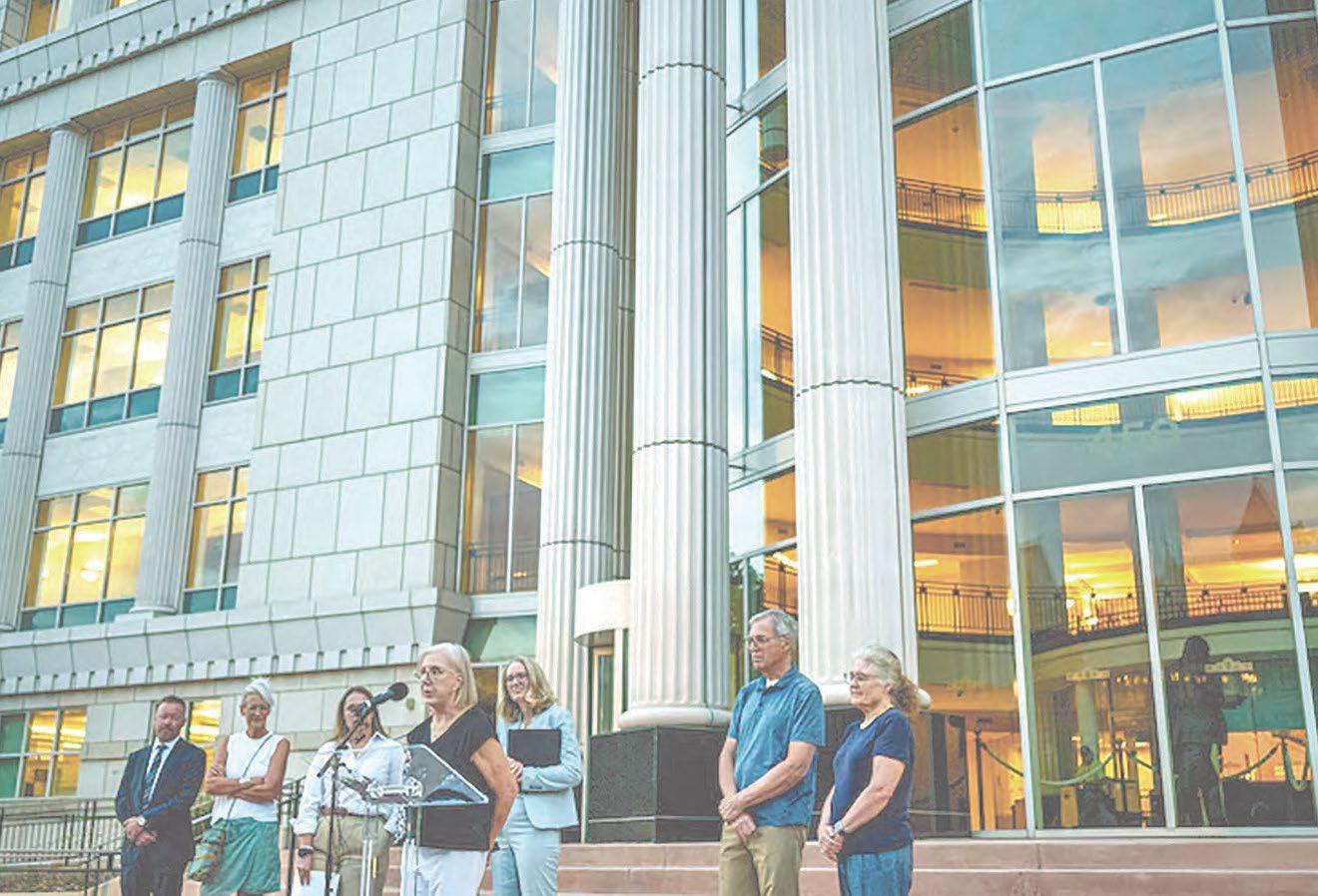 Katharine Biele speaks at a news conference in Salt Lake City on Monday, Aug. 25, 2025. A judge earlier ruled that the Legislature will have thirty days to adopt new maps that comply with the 2018 Better Boundaries initiative guidelines.