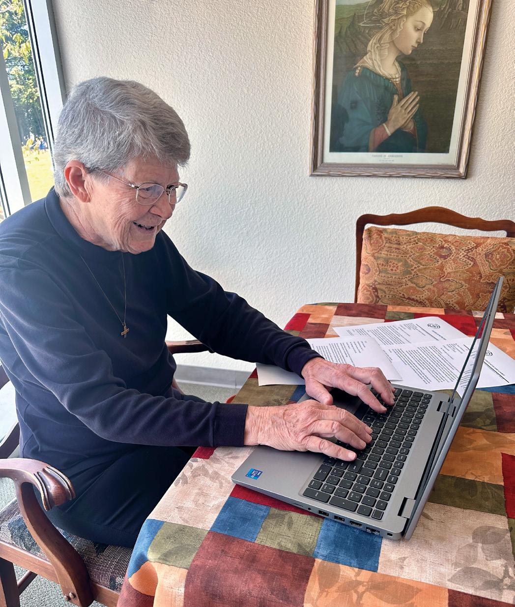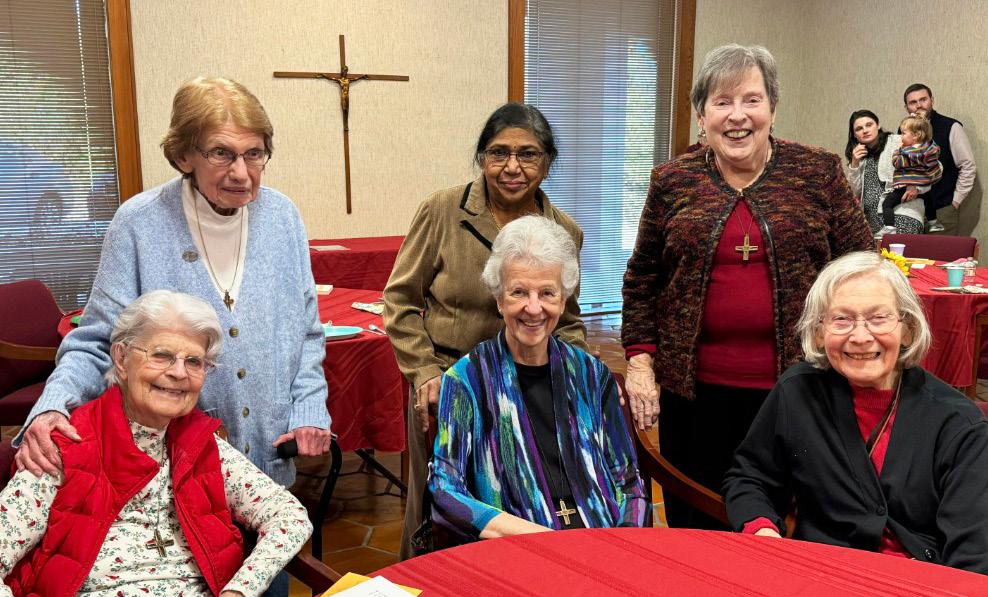 above (clockwise from left): Sisters Ellen Glavin and Jane McAndrews, SNDdeN at the 2024 Jubilee Celebration at Emmanuel College, Boston. Back row: Sister Patricia Babington, SNDdeN, Juliana Fernandez, AND, Sister Mary Donohue, SNDdeN; front row: Sisters Barbara English, Anne-Louise Nadeau, Anne O’Donnell, SNDdeN (Base Communities) at the Feast Day celebration, Baltimore. Sister Liz Tiernan, SNDdeN. Sisters Martin de Porres Coleman, Terry Davis and Beth Plesche, SNDdeN, at the Feast Day celebration, Belmont, California.