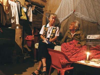 While serving in pastoral ministry in Tambogrande, Peru, Sister Meg Walsh visits and prays with a parishioner.