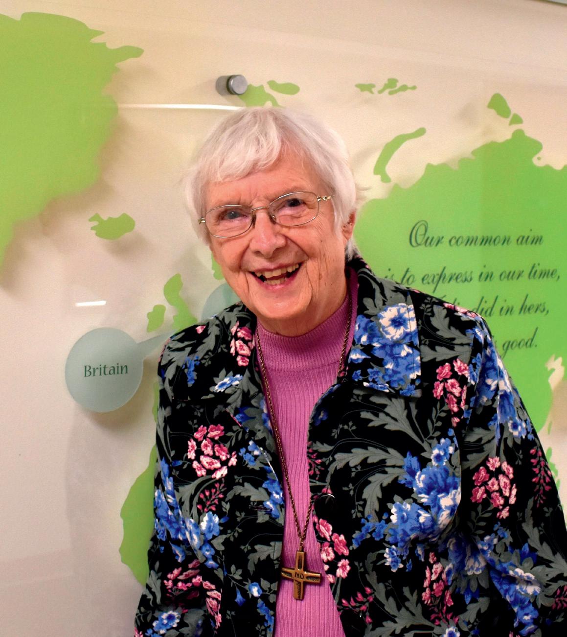 Pictured on the left, Sister Rita Sturwold, SNDdeN, greeted members of the Our Lady of the Window Society at a 2023 event in Chicago. Members are alumnae of the Notre Dame School for Girls, which closed in 2016.