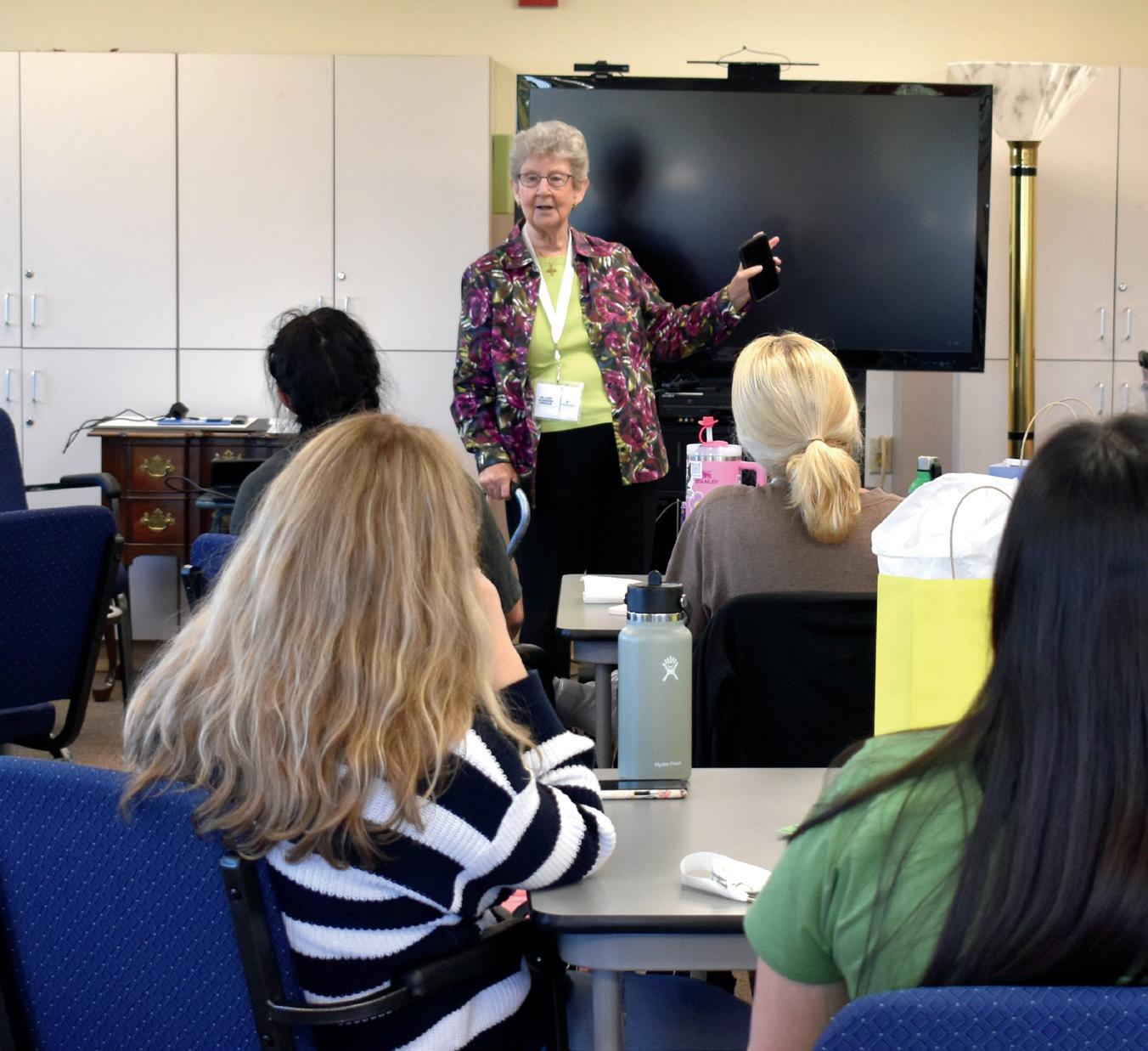 Sister Judith Clemens, SNDdeN, gave a presentation to a large group at the Notre Dame Mission Volunteers retreat in Cincinnati.