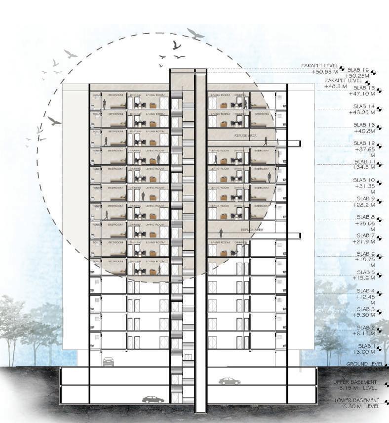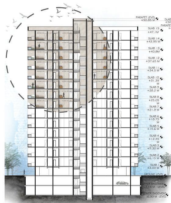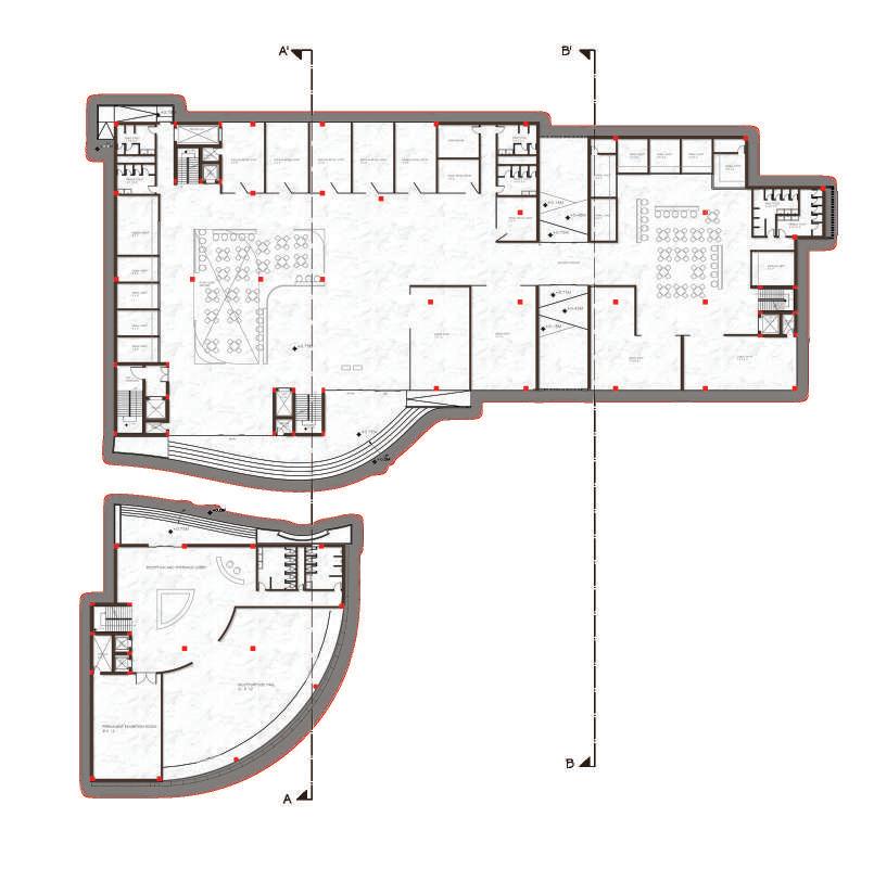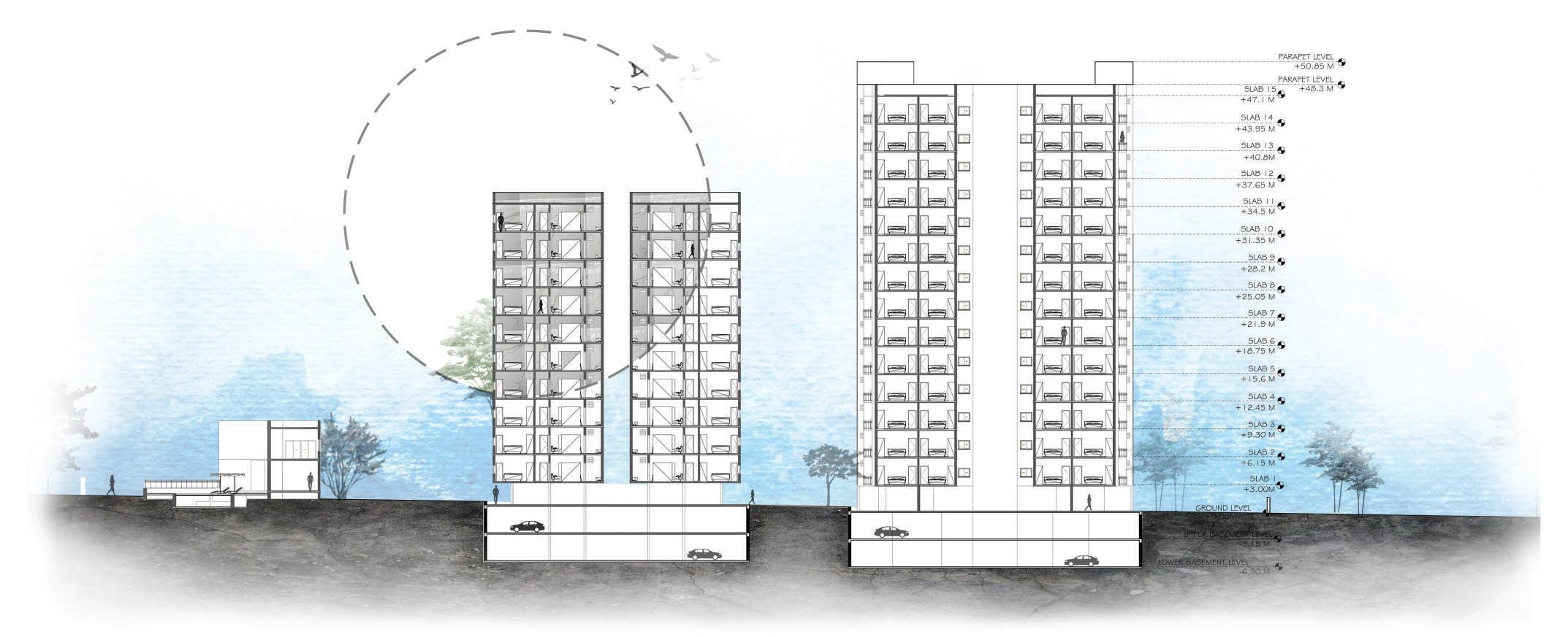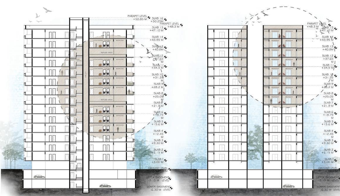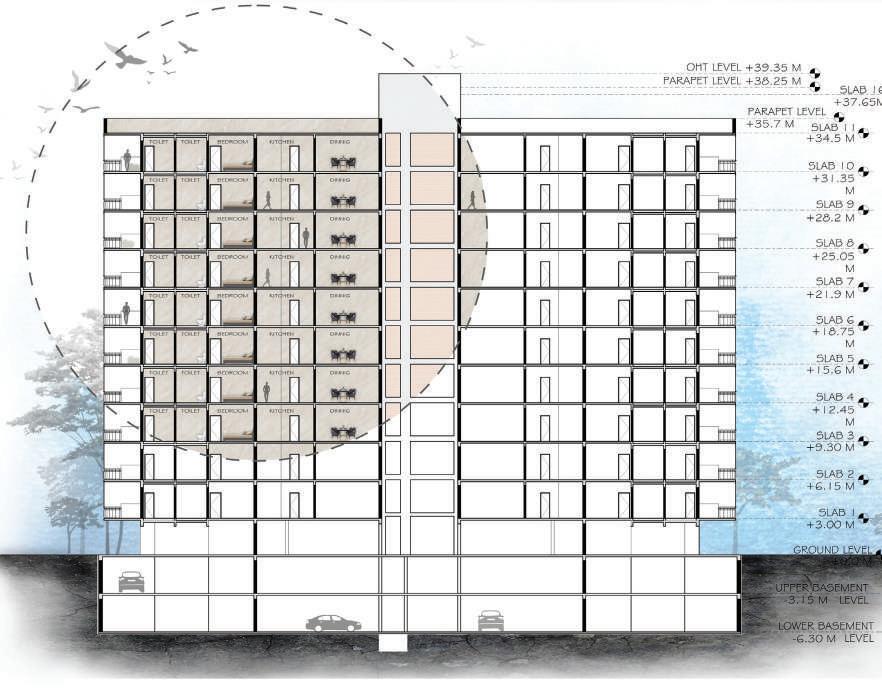 The unifying concept for this L-shaped building is “Vertical Integration.” This concept emphasizes the seamless integration of diverse functions vertically within the building, creating a cohesive experience for users while maintaining visual and functional connections between different levels.