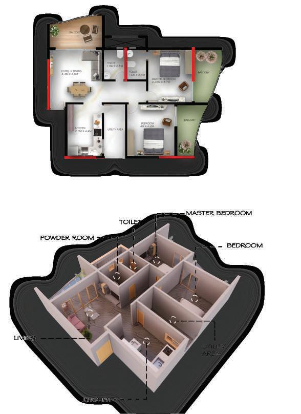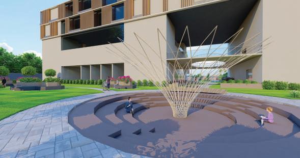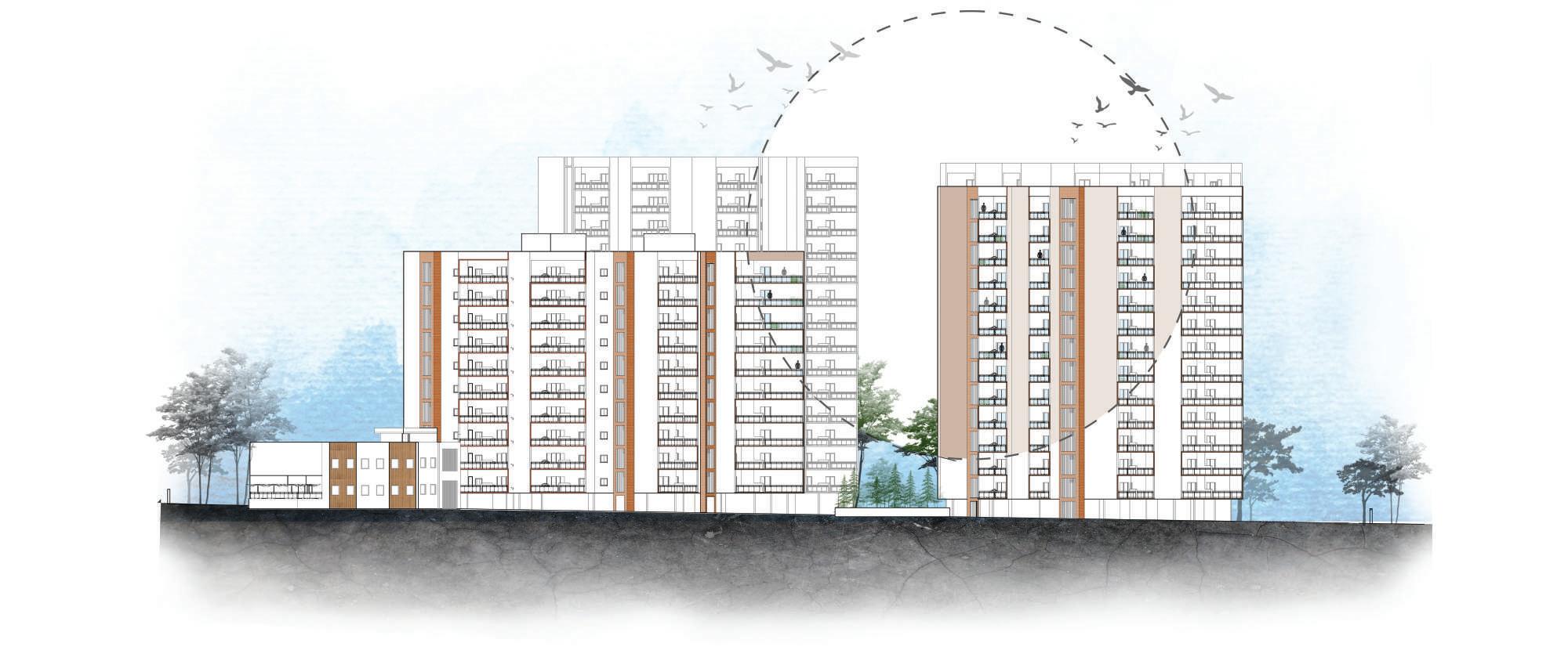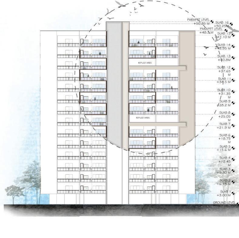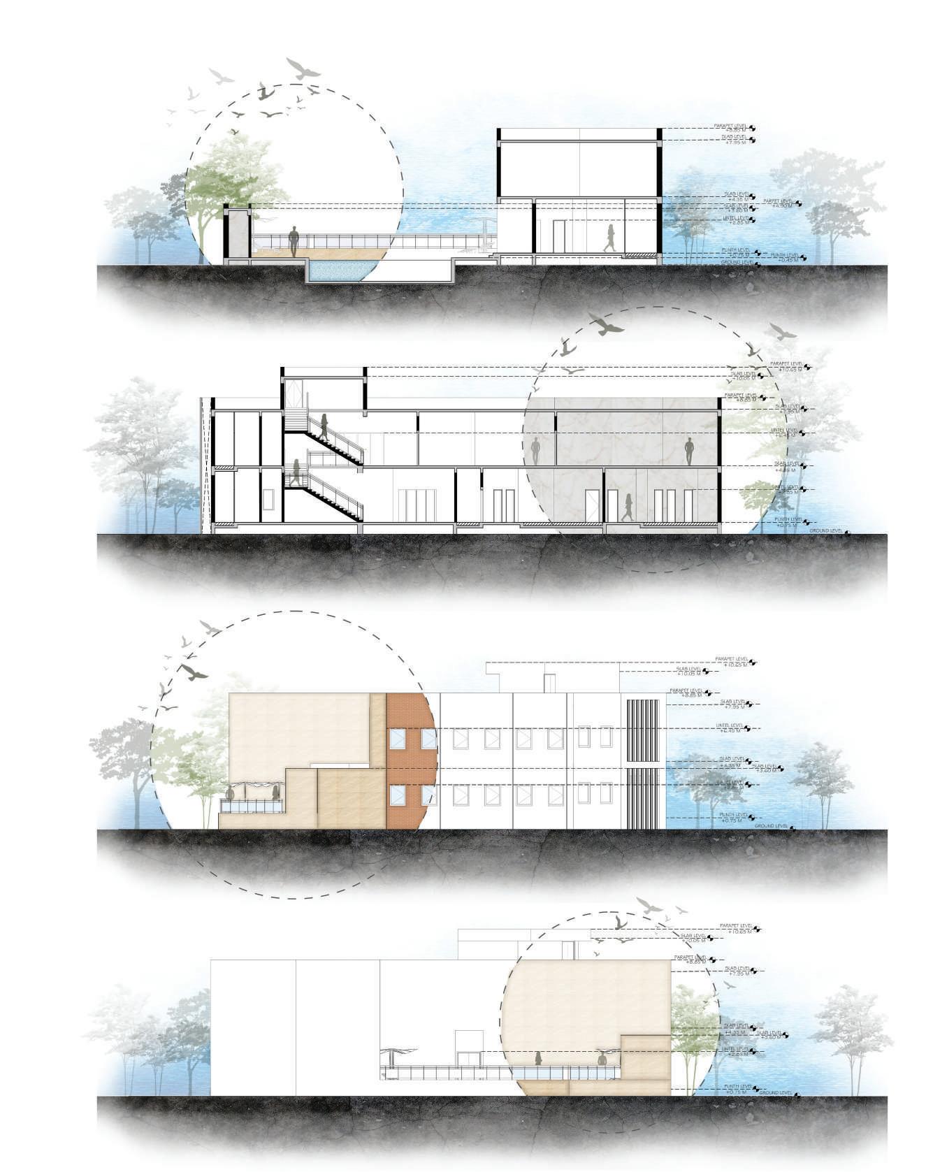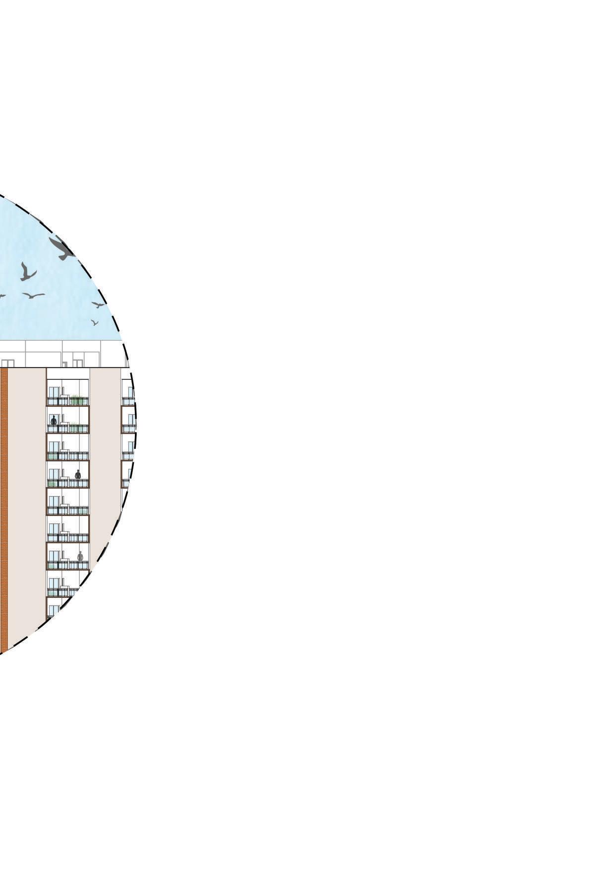 The unifying concept for this L-shaped building is “Vertical Integration.” This concept emphasizes the seamless integration of diverse functions vertically within the building, creating a cohesive experience for users while maintaining visual and functional connections between different levels.