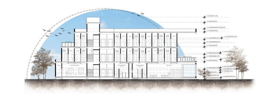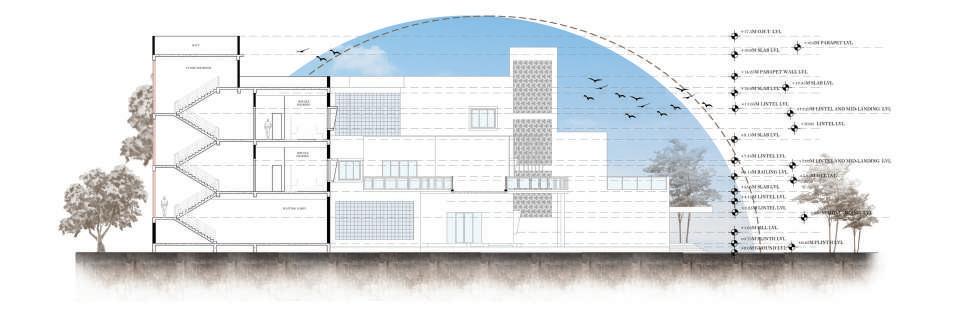 18225 25000 99 1400 KEY PLAN (1:1000) DR.D.Y.PATIL COLLEGE OF ARCHITECTURE,AKURDI PROJECT PROPOSED CAMPUS DESIGN AT TATHAWADE,PUNE OWNER:DYPCOA TITLE SECTIONS DESIGNED/ DRAWN BY: SNEHA KOTHARI AR.AKALPITA JOSHI AR.ANKITA LODHA A.Y. 2022-2023 SEMESTER. VI APPROVED BY: SIGN NORTH WORKING DRAWING-II (R.C.C. FRAMED STRUCTURE G+1) GENERAL NOTES: 1. ALL DIMENSIONS ARE IN MM, UNLESS OTHERWISE SPECIFIED. 2. WRITTEN DIMENSIONS TO BE FOLLOWED. 3. ALL DIMENSIONS ARE FROM UNFINISHED TO UNFINISHED SURFACE. 4. DO NOT SCALE THE DRAWING. 5. THIS DRAWING IS THE PROPERTY OF AND SHOULD NOT BE COPIED OR REPRODUCED WITHOUT WRITTEN PERMISSION FROM THE ARCHITECT. 6. ANY DISCREPANCY TO BE CONSULTED WITH THE ARCHITECT. KEY PLAN
