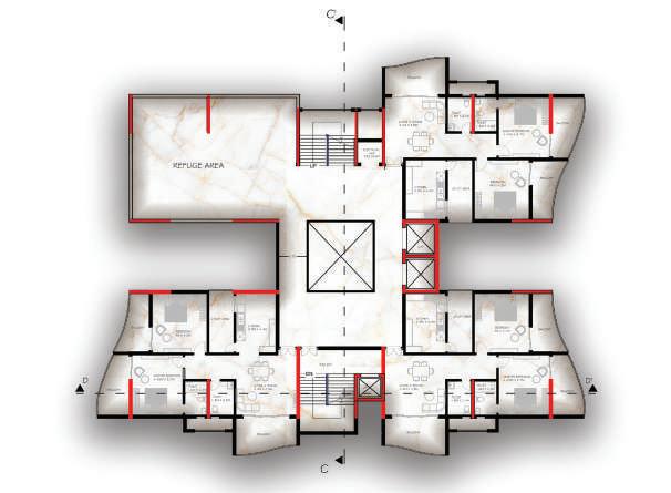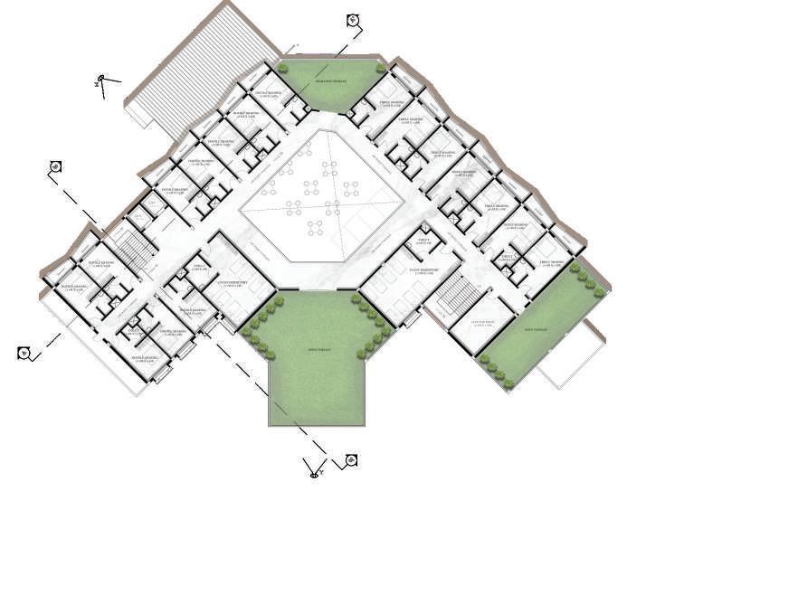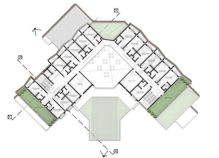 SCALE: 1:75 CLASS T.Y.B.ARCH(C) ROLL NO.: 205 DOOR SCHEDULE SR.NO. DOORS LENGTH X HEIGHT TYPE QUANTITY 01. D1 3000MM X 2500MM 02. D2 1200MM 2500MM 03. D3 1000MM 2500MM 04. D4 900MM X 2500MM 05. D5 750MM X 2500MM DOUBLE-SLIDING GLASS DOOR 01 06 03 03 07 DOUBLE-PANE WOODEN SWING DOOR SINGLE-PANE WOODEN SWING DOOR SINGLE-PANE WOODEN SWING DOOR SINGLE-PANE SWING FLUSH DOOR WINDOW SCHEDULE SR.NO. WINDOW LENGTH SILL HEIGHT TYPE QUANTITY 01. W1 1000MM 900MM 1500MM ALUMINIUM FRAMED TWO 09 -PANE SLIDING WINDOW 02. W2 1200MM 900MM 1500MM ALUMINIUM FRAMED TWO 09 -PANE SLIDING WINDOW 03. W3 1500MM 900MM 1500MM ALUMINIUM FRAMED THREE 02. -PANE SLIDING WINDOW 05. V1 600MM 2100MM 600MM LOUVERED WINDOW 07 06. D6 3000MM 2500MM COLLAPSIBLE DOOR 01 04. W4 1000MM 2400MM 2400MM ALUMINIUM FRAMED FIXED 02 WINDOW DATE 26/04/2023 PANTRY (3000 X 6000) VICE-PRINCIPAL OFFICE (4000 X 6000) PRINCIPAL OFFICE (5000 X 6000) RECEPTION + WAITING (11000 X 6000) ADMIN OFFICE (10500 X 6000) MEN'S TOILET (7000 X 3000) WOMEN'S TOILET (5000 X 3000) STUDIO 1 (7000 X 8000) FACULTY ROOM (12500 X 11000) CONFERENCE ROOM (7230 X 8000) DIRECTOR'S OFFICE (7230 X 5000) COURTYARD (21000 X 10500) PASSAGE 3000MM WIDE STUDIO 2 (10500 X 11000) LVL+0.0MM +0.0 MM GROUND LEVEL +600MM PLINTH LEVEL UP DOWN +2550 STUDIO 3 (11000 X 11000) UP LVL+150.0MM LVL+300.0MM LVL+450.0MM LVL+600.0MM W1 W1 W2 W1 W3 W1 W1 W1 W4 W3 V1 V1 V1 V1 V1 V1 V1 D2 D2 D2 D2 D2 D2 D3 D3 D3 D4 D4 D4 D5 D5 D5 D5 D5 D5 D5 8330 5560 1930 4500 1930 550 830 70 220 6000 10500 3000 7000 1200 300 5730 2560 1700 100 1600 1600 1600 1600 900 900 900 900 95135 3320 160 140 160 140 160 140 160900 900 1160 1500 1500 1500 140 140160 300 260 1500 300 570 1118 8918 1730 22070 4780 5000 3000 2030 5160 5000 2000 1870 200 710 2000 1000 3000 7160 6780 30 300 1700 4860 300 70 70 7000 8000 880 3400 880 6860 6330 220 220 220 9530 10530 300 5275 70 5055 220 450 2700 2045 450 10500 11000 220 70 5055 5055 220 4980 450 3500 11000 2780 1260 450 1460 2650 11000 5275 450 3775 11000 300 5055 450 5055 220 70 690 10540 220 4950 300 7110 3900 155 450 1100 1700 480 12500 11000 W2 W2 W1 W1 W1 W2 W2 W2 W2 W2 W2 220 220 1015 1750 70 220 3040 6500 7090 70 70 220 6280 80 220 7090 22070 1425 2180 1555 220 7230 8000 300 3480 220 7090 70 70 675 2605 220 7230 3000 830 3930 7690 2930 70 220 450 900 450 2560 220 1800 300 6000 3000 647 2100 106070 1800 70 4000 6000 70 815 995 120 1160 1150 120 2560 450 2550 220 620 3310 6000 5000 420 6920 6230 3250 2750 5000 1500 3000 6230 11000 6460 16170 3000 1000 450 2560 220 7230 20150 7230 11230 34920 24920 1600 7035.43 115° 115 155° 155 5230 3000 1000 1000 1000 7460 5150 LVL+600.0MM LVL+550MM LVL+400.0MM LVL+250.0MM LVL+100.0MM 18000 10500 7500 5000 220 500 500 500 8150 9460 8460 6650 6700 6700 7000 5230 4930 7000 6700 6700 4930 5230 10 11 13 15 18 20 22 23 25 +570MM D1 W4 C1 C2 C3 C4 C5 C6 C7 C8 C9 C10 C11 C12 C13 C14 C15 C16 C17 C18 C19 C20 C21 C22 C23 C24 C25 C50 C51 C52 C53 C54 C56 C57 C58 C59 C55 C29 C30 C38 C37 C36 C35 C34 C33 C32 C31 C26 C27 C28 C39 C40 C41 C42 C49 C48 C47 C46 C45 C44 C43 300 X 450 300 X 450 450 X 300 300 X 450 300 X 450 300 X 450 300 X 450 300 X 450 300 X 450 300 X 450 300 X 450 450 X 300 450 X 300 450 X 300 450 X 300 450 X 300 450 X 300 450 X 300 450 X 300 450 X 300 300 X 450 300 X 450 300 X 450 300 X 450 300 X 450 300 X 450 300 X 450 300 X 450 300 X 450 300 X 450 300 X 450 300 X 450 300 X 450 300 X 450 300 X 450 300 X 450 300 X 450 300 X 450 300 X 450 300 X 450 300 X 450 300 X 450 300 X 450 300 X 450 300 X 450 300 X 450 300 X 450 300 X 450 300 X 450 300 X 300 300 X 300 300 X 300 300 X 300 300 X 300 300 X 300 300 X 300 300 X 300 300 X 300 300 X 300 450 D6 A A' B B' 600 230 600 600 230 3500 10500 8850 7000 34920 34380 31380 01. 31/01/2023 02. 06/02/2023 13/03/2023 03. 15/03/2023 04. 03/04/2023 05. 15 2020 - 2024