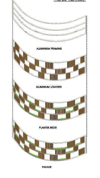 “The design of the aluminum facade incorporates a seamless fusion of modern architecture and greenery through the strategic integration of planter beds within its framing. The sleek lines and metallic finish of the facade serve as a contemporary backdrop, accentuating the vibrant hues and organic shapes of the lush vegetation housed within the planters. This innovative approach not only adds aesthetic appeal but also promotes sustainability by introducing greenery into urban environments. As sunlight dances across the reflective surface of the aluminum, it enlivens the surrounding space, creating a dynamic interplay between light, shadow, and foliage. The integration of planters into the facade not only softens the architectural lines but also blurs the boundaries between indoor and outdoor spaces, fostering a harmonious relationship with nature.”
