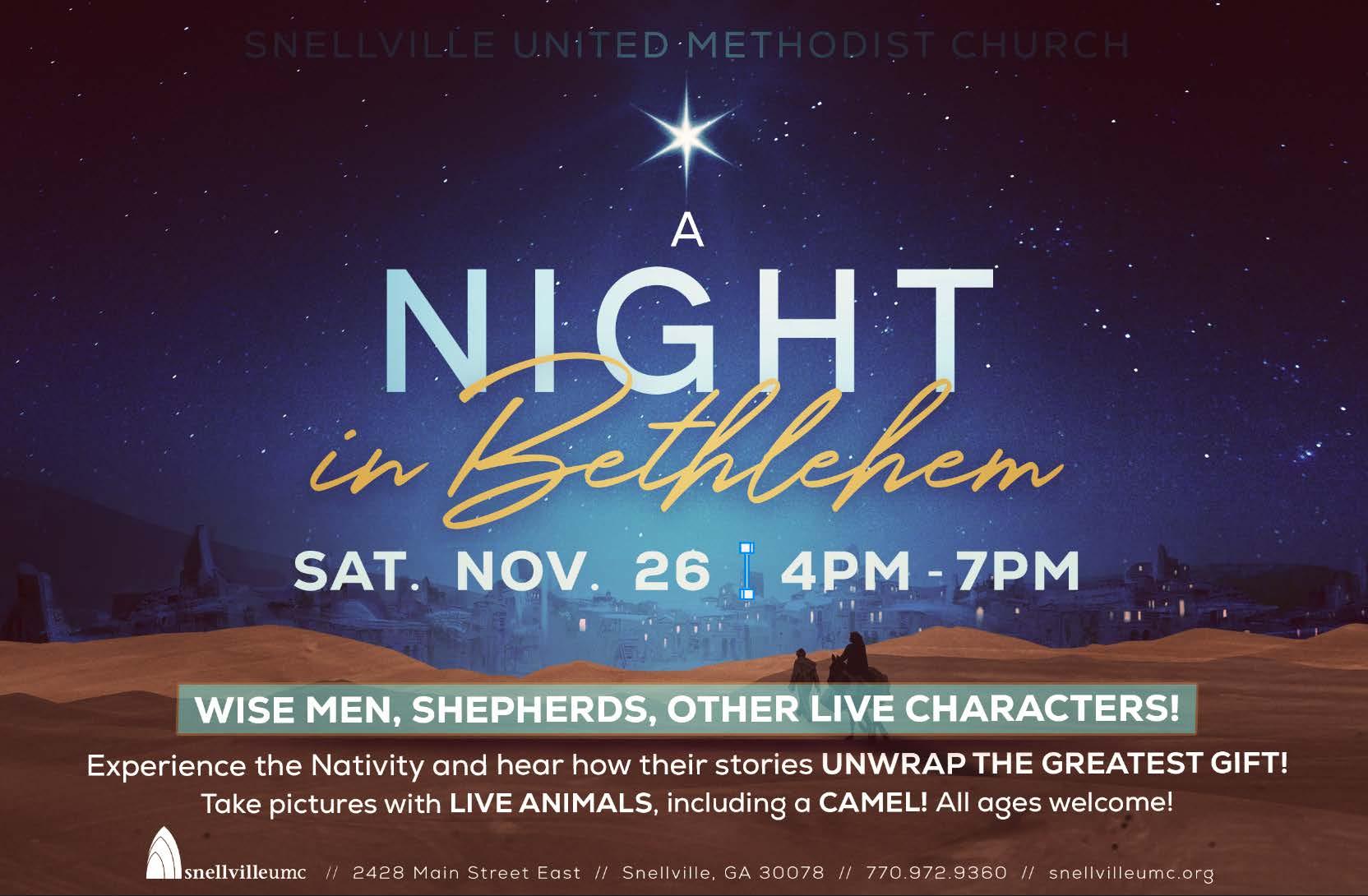 In partnership with Experience Snellville, Snellville United Methodist Church presents: A Night in Bethlehem Nov. 26 from 4–7 pm