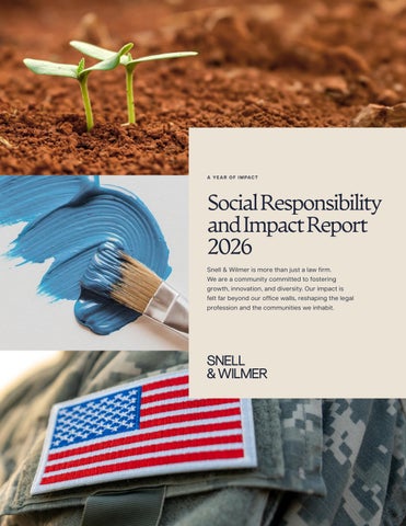 The following pages highlight our dedication to these specific areas, starting with pro bono service. While it is impossible to feature all those who contributed, we applaud and thank the attorneys and staff of Snell & Wilmer.