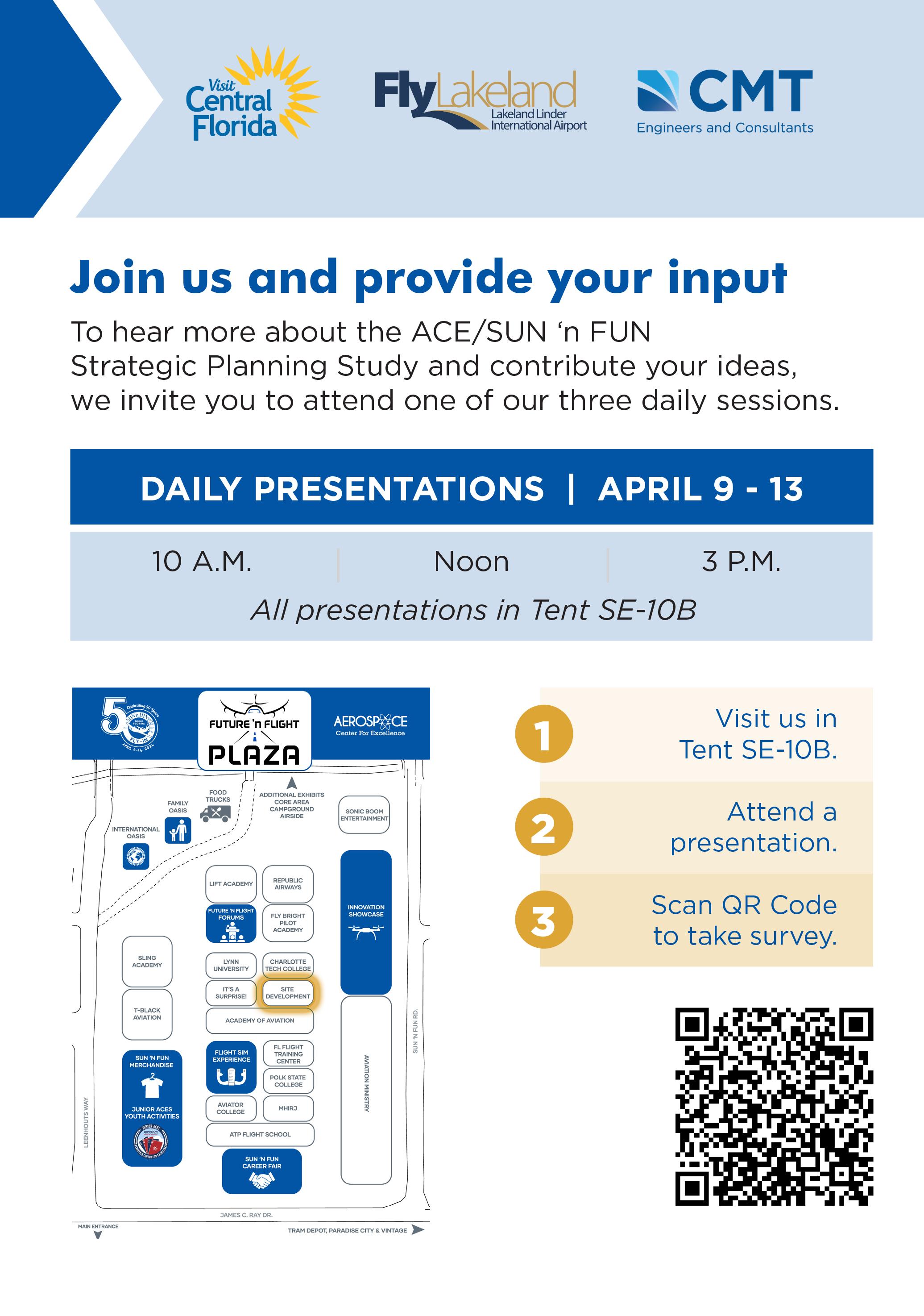 Fifty years is undoubtedly a significant milestone for the SUN ‘n FUN Aerospace Expo to celebrate and we are excited to craft the blueprint for the next 50. In partnership with the Lakeland Linder International Airport, Visit Central Florida, and our engineering firm, CMT, we have already begun the effort to reimagine our footprint on the airport for our next 50 years. We invite you to visit our Master Site Plan tent (SE-10B) located in the Future ‘n Flight Plaza and learn about the process, participate in our forums, and give us your feedback and insight to help us reimagine our year-round and Fly-In footprint on the airport. The coming airport enhancements bring opportunity for us to build a bigger, better, and brighter future for aviation with every anniversary; we hope you continue to join the journey.