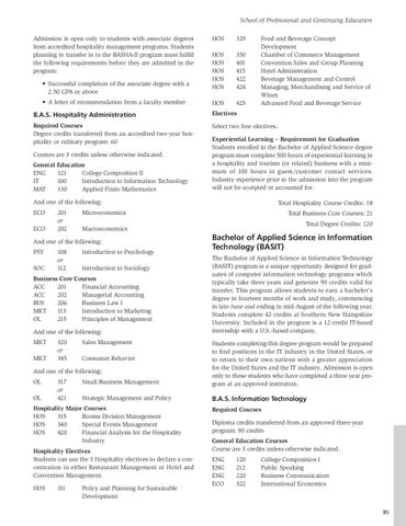 Required Courses Degree credits transferred from an accredited two-year hospitality or culinary program: 60