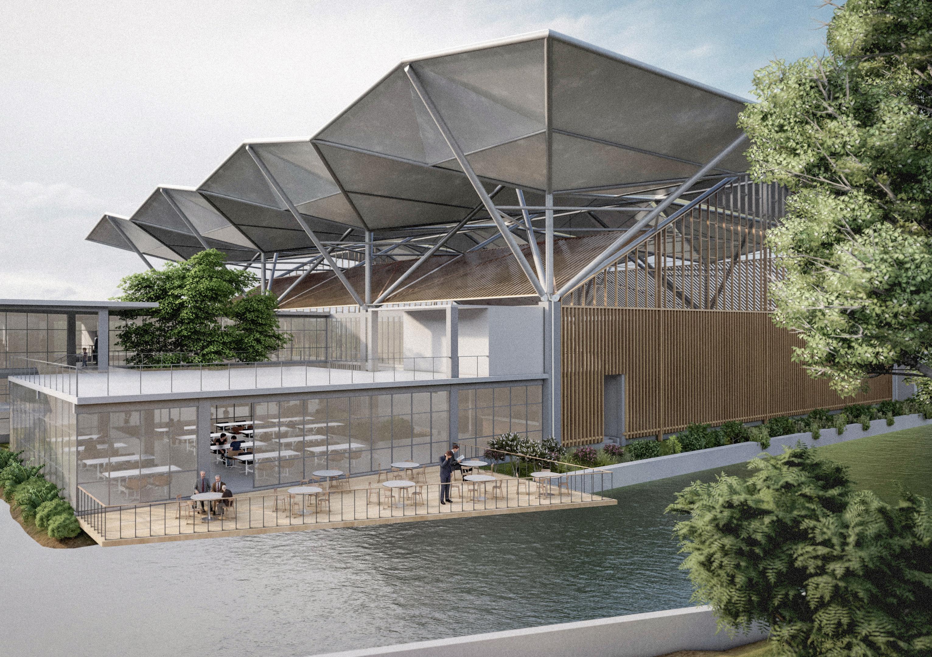 SECTION A-A 1 2 3 4 5 6 8 9 7 7350 5150 5650 5650 3900 2150 8900 33615 72420 TOF +3900 TOF +400 TOF +3900 TOR +16670 100 450 300 3300 2950 200 100 100 7505 D3 E_03 Color-coated Steel Hollow Tube Aluminium Sandwich Panel Automated Corten Steel Frames Double-glazed Glass Wood Stainless Steel Clear Glass Brick Plastered Reinforced Concrete Reinforced Concrete Clear Glass Stainless Steel Reinforced Concrete Wooden panels D4 E_04 D5 E_05 32