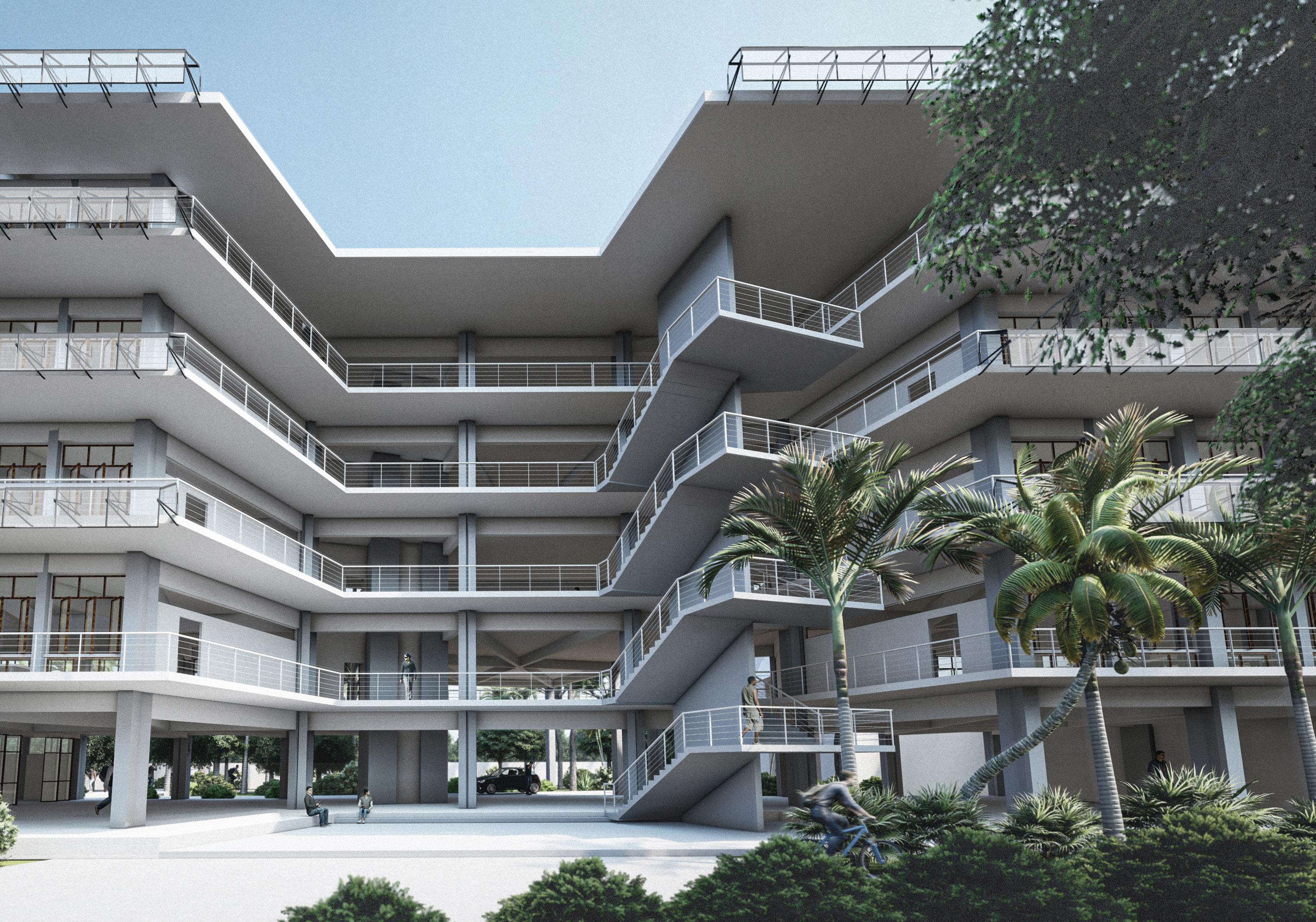 Project Description: The design approaches to solve the accommodation problem of BUET through a vertical expansion. I designed the building in such a way that it consumes less energy and produces most of it through its renewable energy sources. The design follows passive design strategies.