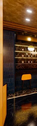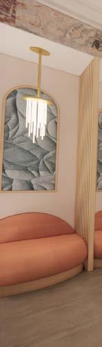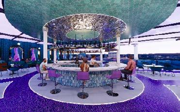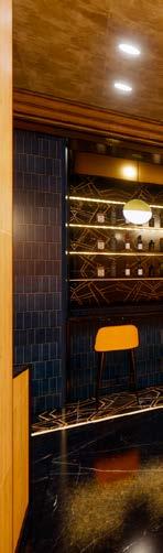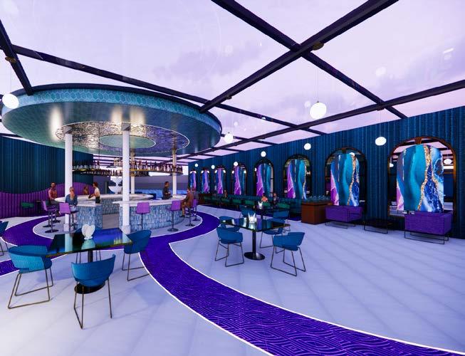 Inspired by the same allurement of sirens, the rooftop bar creates an under-sea ambiance with celestial views, glass ceilings, textured walls, and contrasting colors.