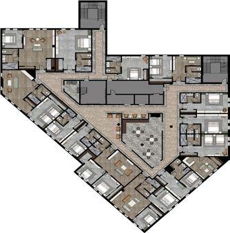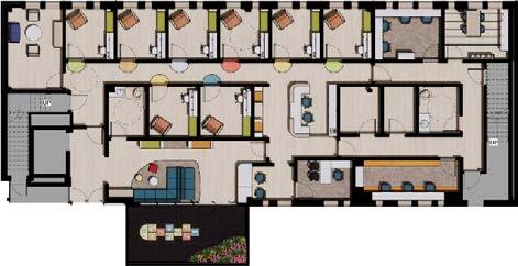 Design a boutique hotel based in a central city area, including a restaurant, spa, cafe, apartment suites, guest rooms, and a rooftop bar, while working as a team.
