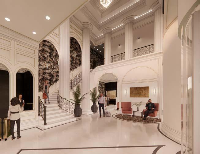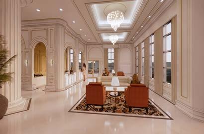 The hotel lobby pays tribute to Greek elegance with its stunning design inspired by Greek architecture. The space is adorned with large crystal chandeliers, creating an opulent atmosphere that exudes luxury. Reception