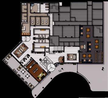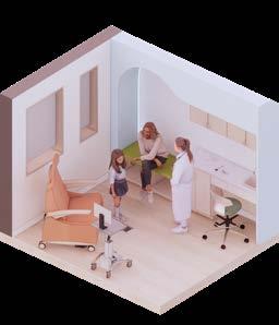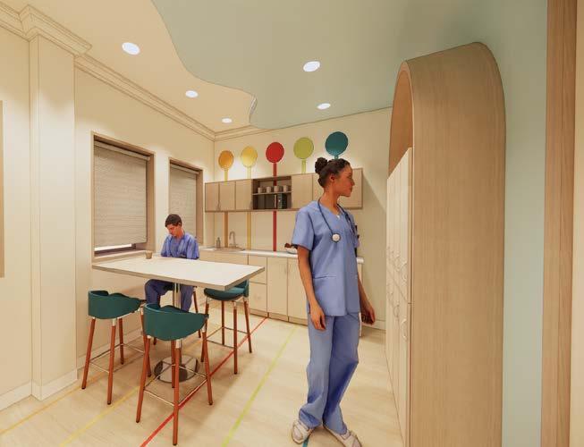 The nurse station design includes lockable storage for secure storage of sensitive patient information and medical supplies, with two access points for easy and secure entry. This design promotes efficient work flows, seamless communication, and prioritizes patient privacy and confidentiality.