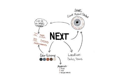 The NEXT Architecture and Design draws inspiration from the 30-foot-tall Eyeball Sculpture in Dallas, Texas. Incorporating its distinctive details such as dark colors, organic curves, and a cohesive design, our team creates functional and inviting spaces.