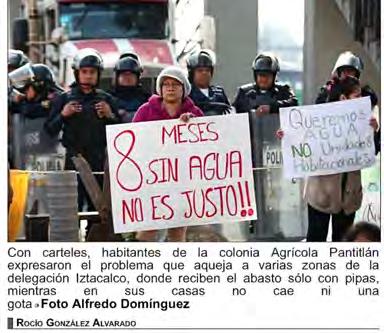 Sinembargo,enestaocasiónsetratabadeun malmanejodedinerodestinadoalastuberías deIztacalcoporsucontraparteunahabitante de la misma alcaldía nos comentó que considera que una de las soluciones es realizarlospagosde“agua”correspondiente de manera puntual para que con esto se realicen de manera correcta los mantenimientosalastuberíasynosequeden sinagua.