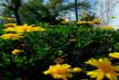 Lago artificial del bosque de san juan de aragón Arbusto de Lantana camara Arbusto de margarita amarilla