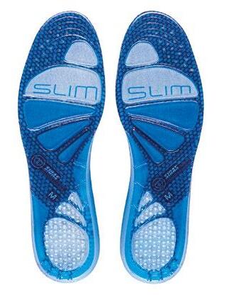 Inovace: dynamická gelová konstrukce pro maximální odpružení paty. Vložky Cushionig Gel Slim absorbují nárazy díky dynamickému odpružení díky gelu, vyvinutému společností Sidas. Jde o síť gelových výstupků, umístěných v oblasti zóny nárazu. Ty jsou dopadem postupně deformovány, což poskytuje výjimečné dynamické tlumení. Antibakteriální a omyvatelný povrch. Tenké vložky určené do bot, kde je méně prostoru.
