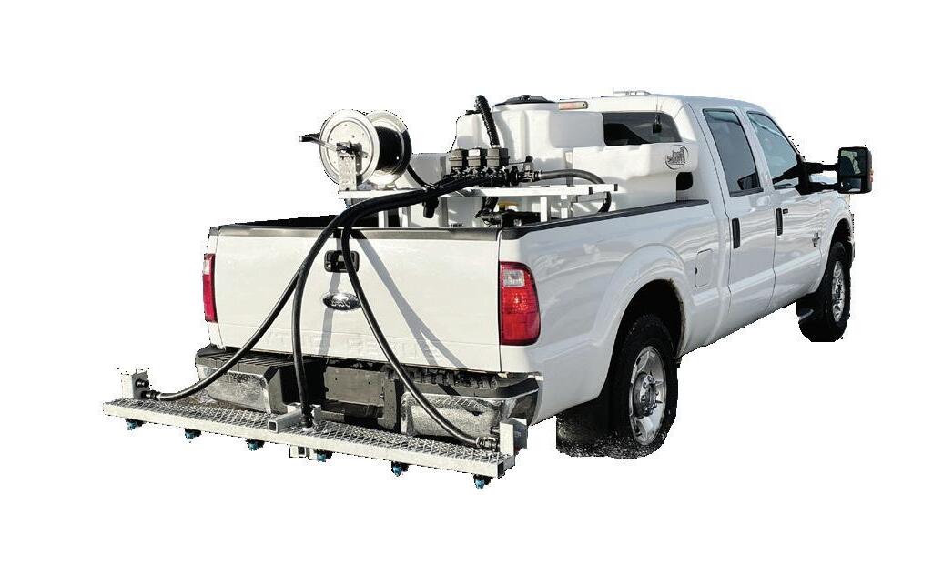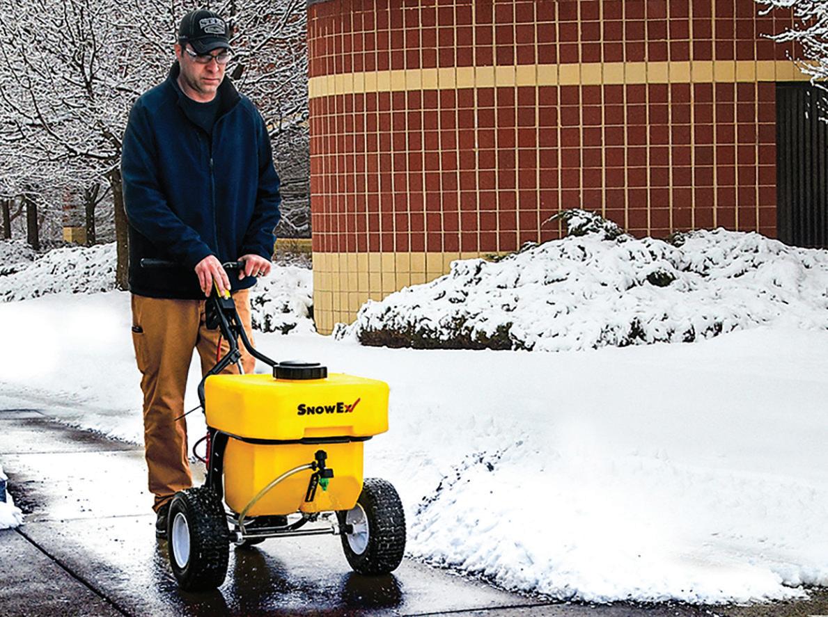 SnowEx walk-behind liquid sprayers are electric-powered and can spray brine up to 48 inches wide through the front boomless nozzle or spot spraying wand, making short work of some of the toughest applications, like stairs and sidewalks. The rechargeable battery powers up to 10 full tanks on a single charge, and an extra-wide opening makes filling easy. Large, pneumatic tires help maneuver over ice and snow. www.snowexproducts.com