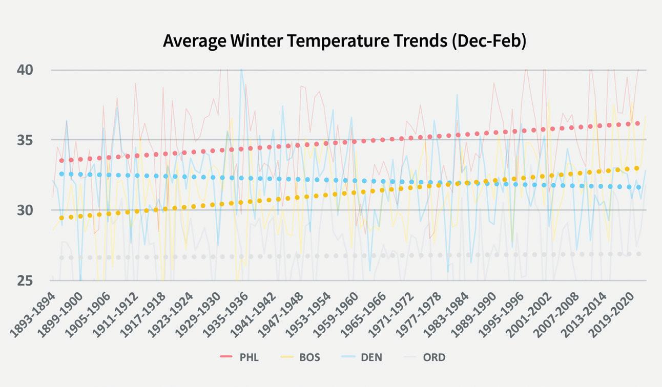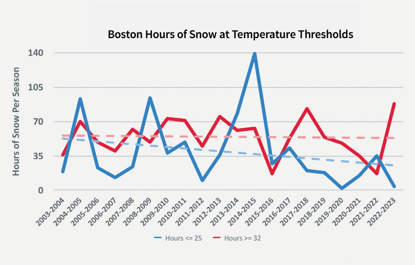 The kind of precipitation we record is also changing. In Massachusetts we are getting a lot of ice storms and mixed precipitation events that create a lot of ice and very heavy snow.