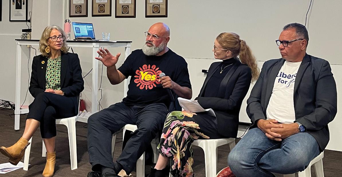 Bridget Cama, Kara Keys and Georgina Byron at Voice to Parliament education event