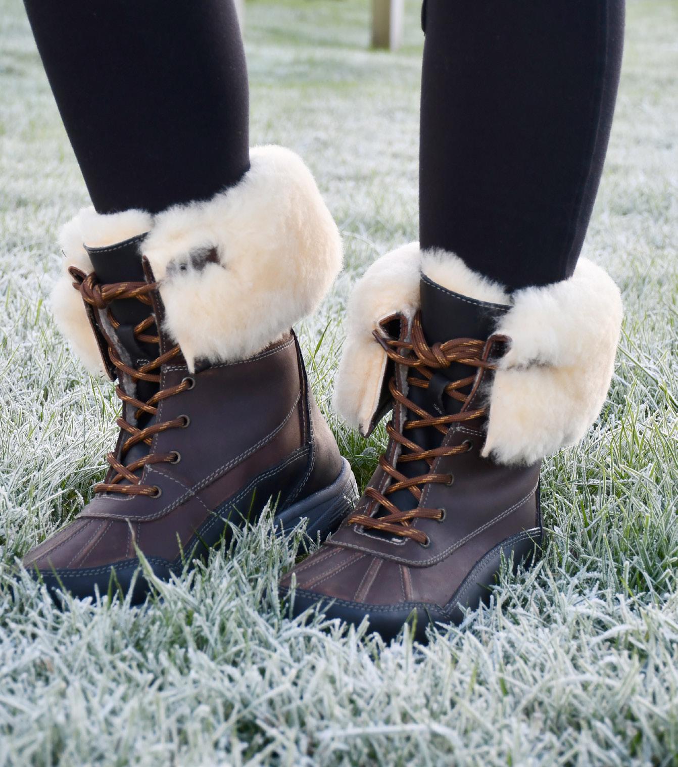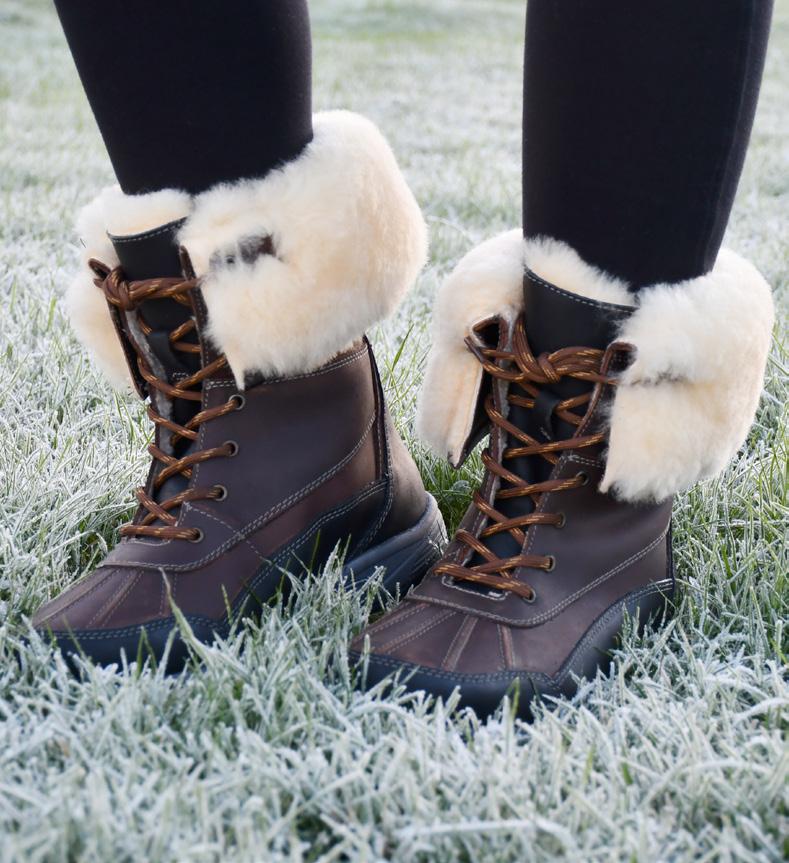 • The faux fur cuff can be worn pulled up to keep the lower legs warm or can be rolled over (as photographed) for a stylish look