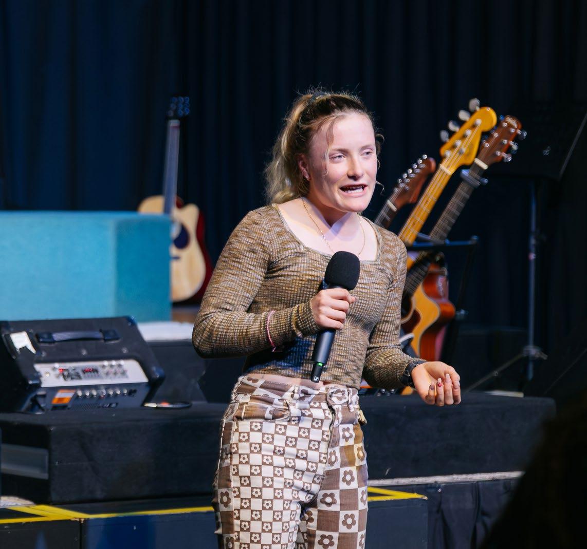 Poppy used performance poetry to convey emotion in a way that was both felt and heard. Her poem ‘Perfection’ explored the harmful and unrealistic pursuit of perfection and the emotional emptiness it can create. Through this piece, she reflected on how striving for flawlessness can limit personal freedom and negatively impact one’s sense of self.