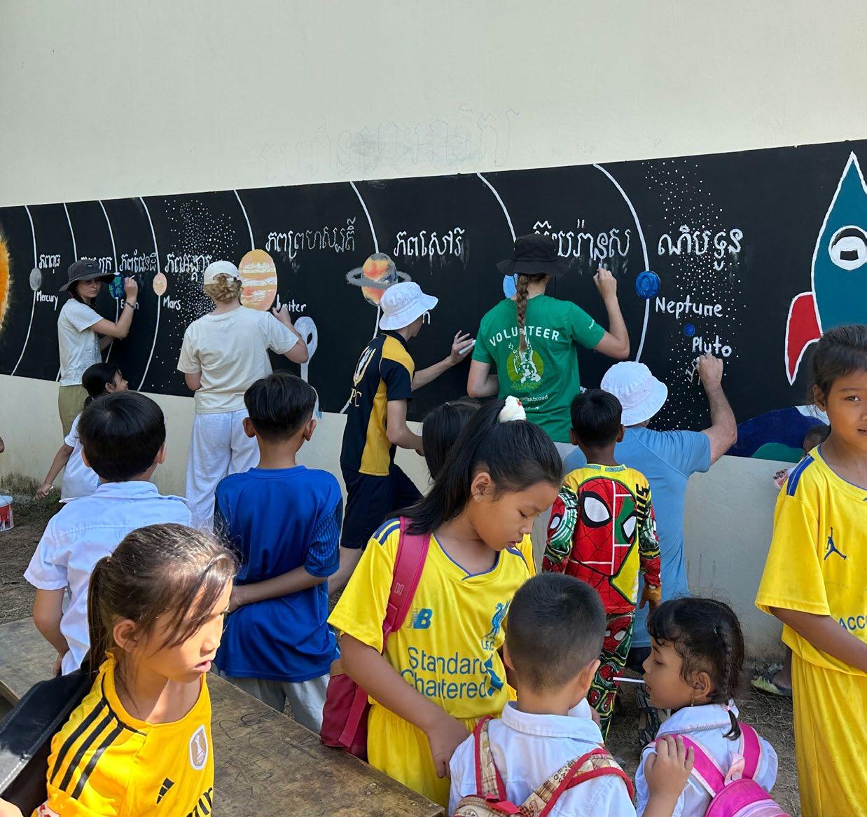 Vihea Sou Primary School is an impoverished school nestled in the rural outskirts of Phnom Penh. The school operates two school sessions in the day because the community struggles to provide the teachers, buildings and resources to meet the critical demand for education in the local area. The students from SMGS were besieged each day with crowds of enthusiastic children and parents, eager to have contact with people from the West and to learn English. The classrooms housed forty-five students in each learning space, all of which lacked glass in the window frames, carpet on the floors and ceiling fans to cool the learners down. The complete lack of technology in the classrooms and the rudimentary teaching methods employed by the teachers, with little to no resources to draw upon, was an astonishing and eye-opening experience for the tour participants. While at the school, the SMGS students worked with determination and perseverance in extreme heat and humidity to pave a very large outdoor area for the children to play on, painted six beautiful murals to brighten the external walls of the classrooms, taught English and Physical Education lessons to a wide variety of year levels, and presented a substantial amount of donated stationery supplies and sports equipment to enhance the learning opportunities for the school community. The SMGS students came away deeply humbled by their interactions with the Cambodian students and their valuable experiences at Vihea Sou Primary School, and with an enormous sense of gratitude for the facilities and resources that they have access to, both at SMGS and in their family homes.