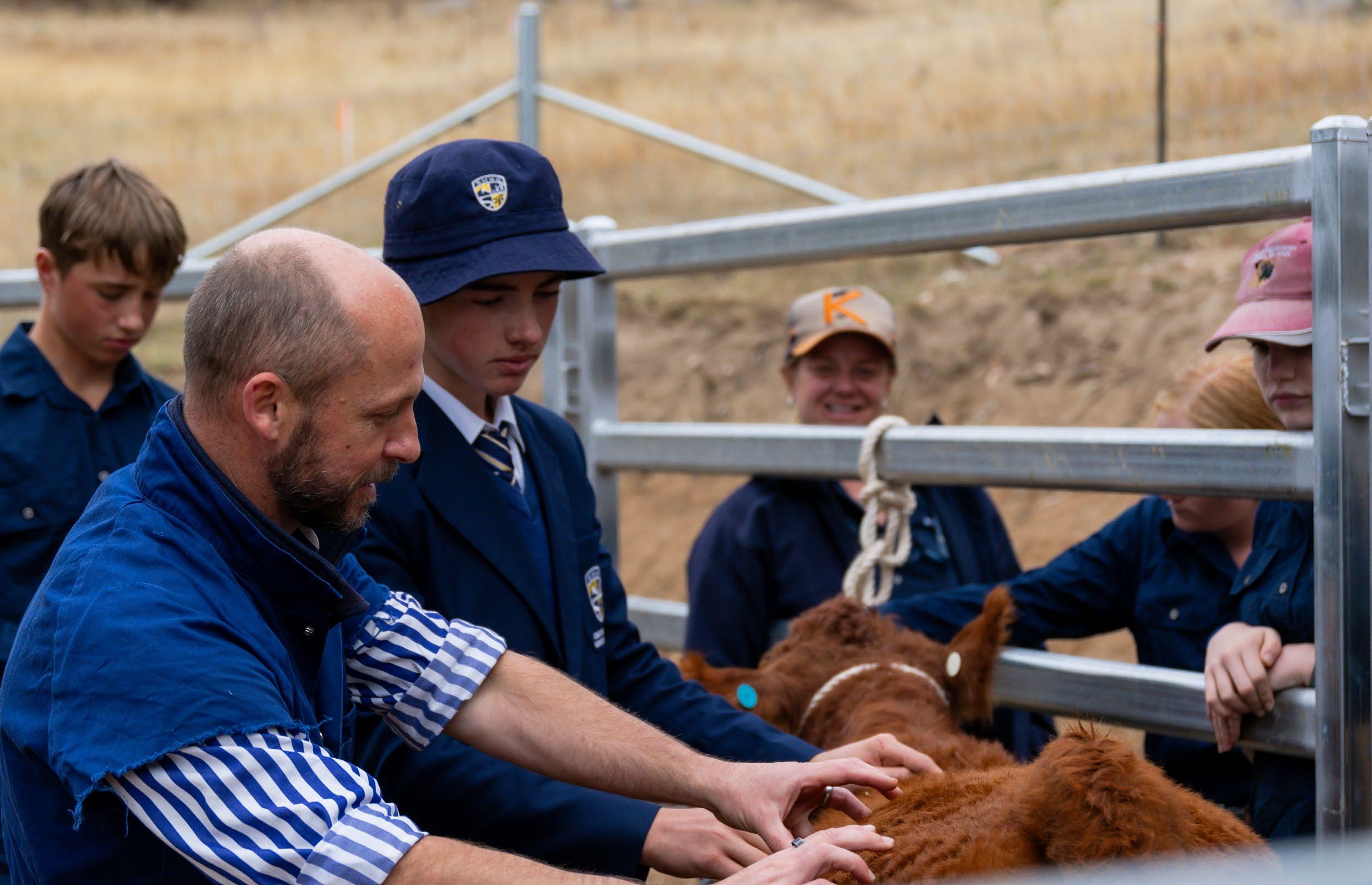 Our Agricultural Technology Elective class recently welcomed Mr Mike Mesley from Snowy Vets. Mike spoke about ruminant digestive systems, the critical significance of balanced nutrition for ruminants, and the distinct functions of each compartment of the four stomachs present in ruminant animals. He also discussed the variation in feed requirements as cattle progress through different growth and developmental stages. Mike then walked the students through the steps of conducting a set of measurements indicative of cattle weight.