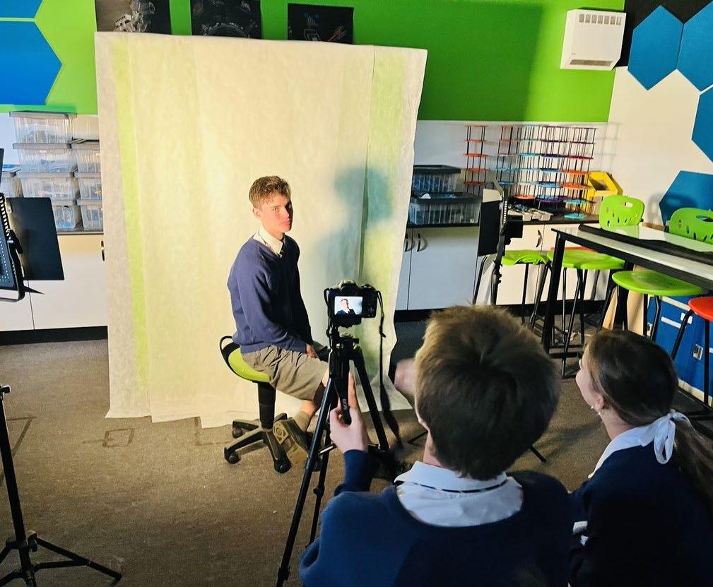 During the term, students have been working with the still image. When considering what makes a photograph good, they have explored exposure, composition, lighting, place and object. Using a suite of new Canon cameras, students have taken photographs each week that concentrate on specific elements of photography. They then embraced our new Adobe suite and used Lightroom Classic to manipulate images. In the photo you’ll see their attempt to consider portraiture.