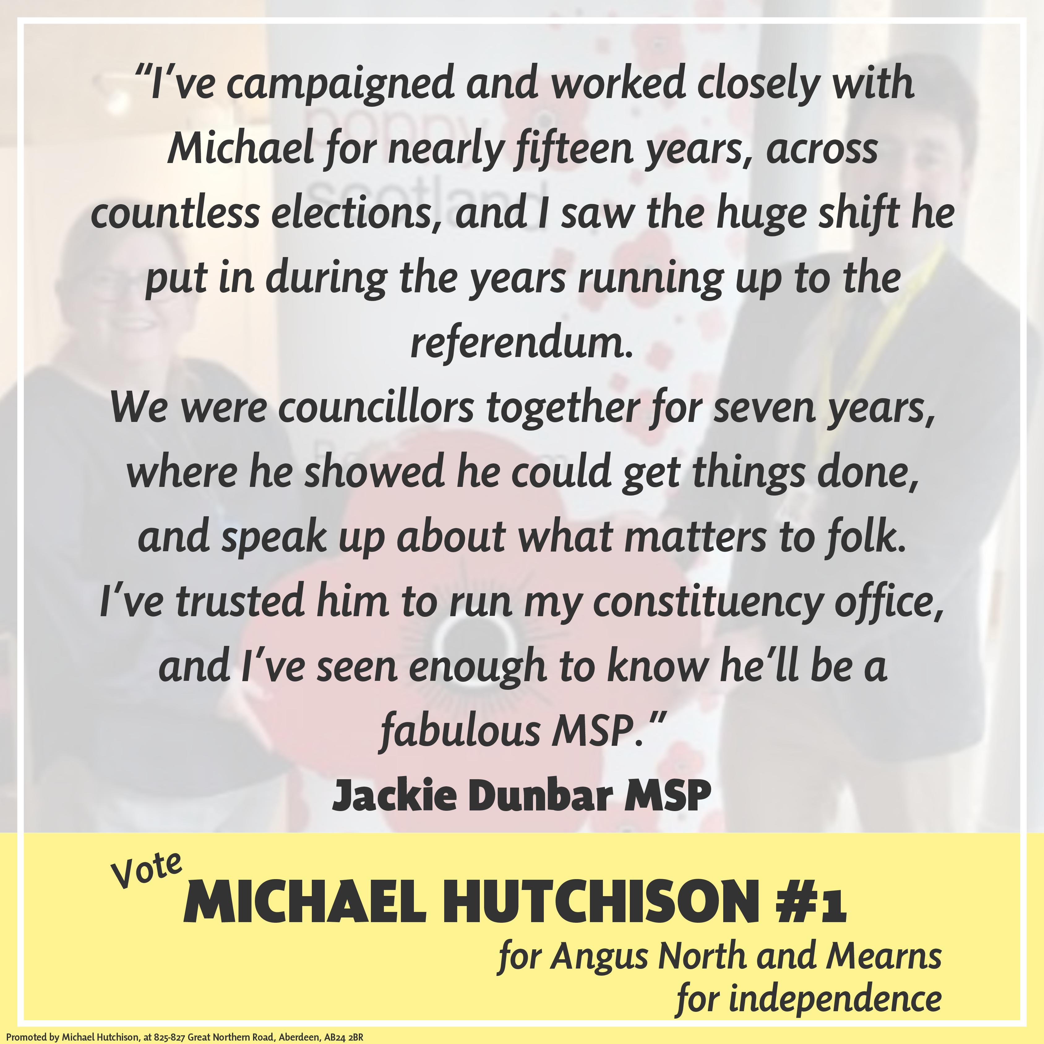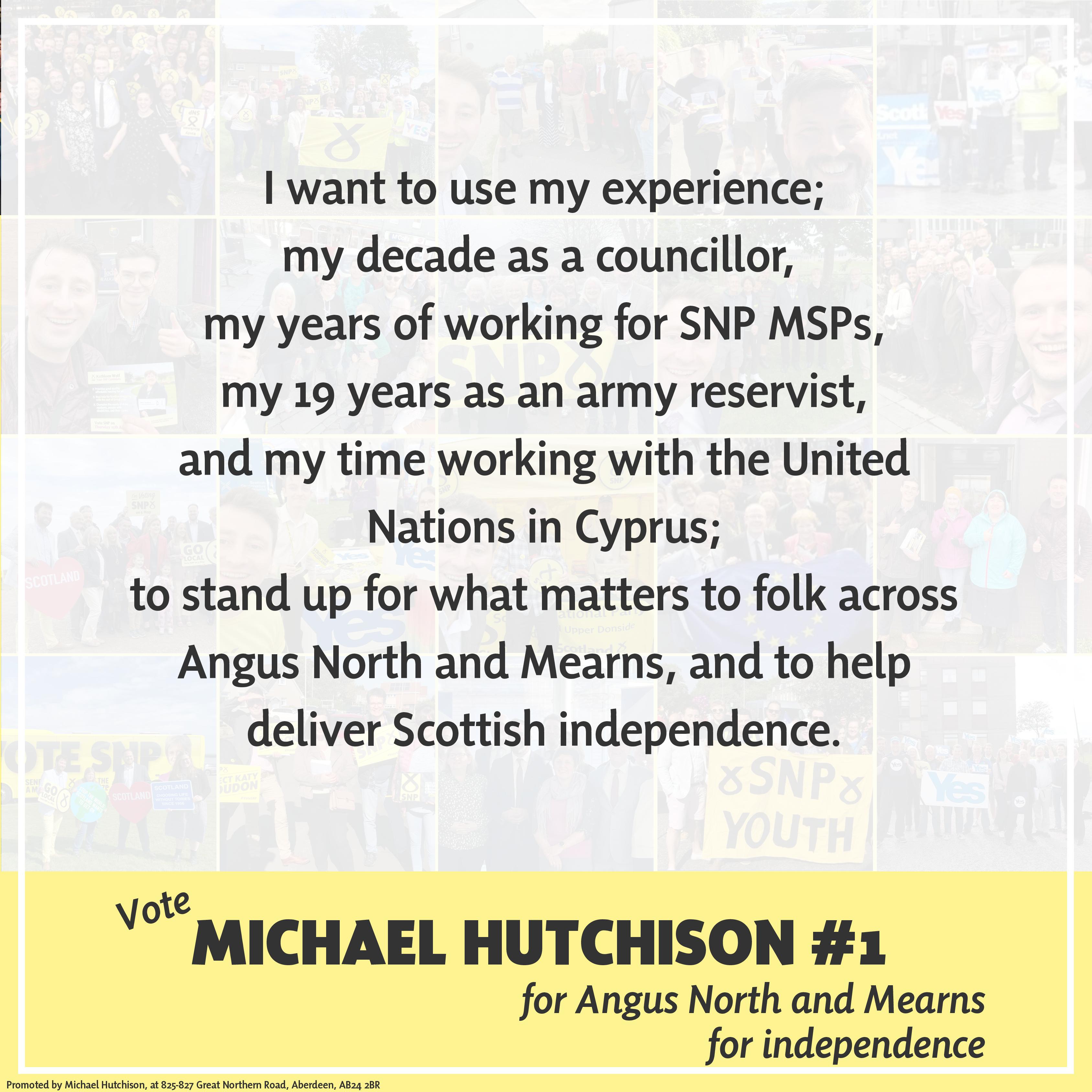 Vote Michael Hutchison #1, for Angus North and Mearns, for independence