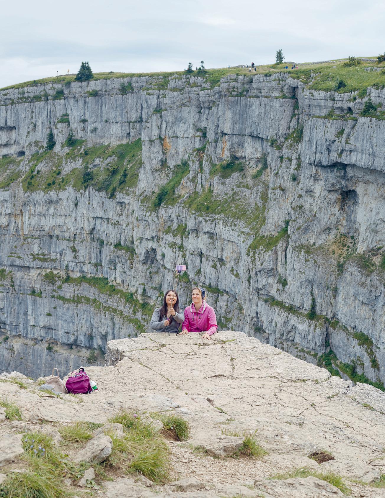 Ob am Genfersee in Montreux (links) oder vor dem Panorama bei Grindelwald (Titelseite): Touristinnen und Touristen sind selbst Teil der Aussicht geworden.