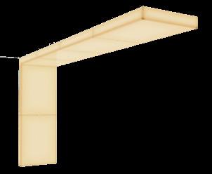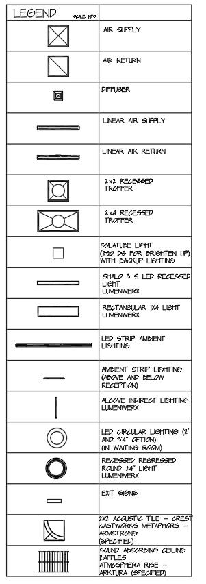 • The soffit mirrors the shape of the reception desk, establishing a vertical relationship between the two elements.