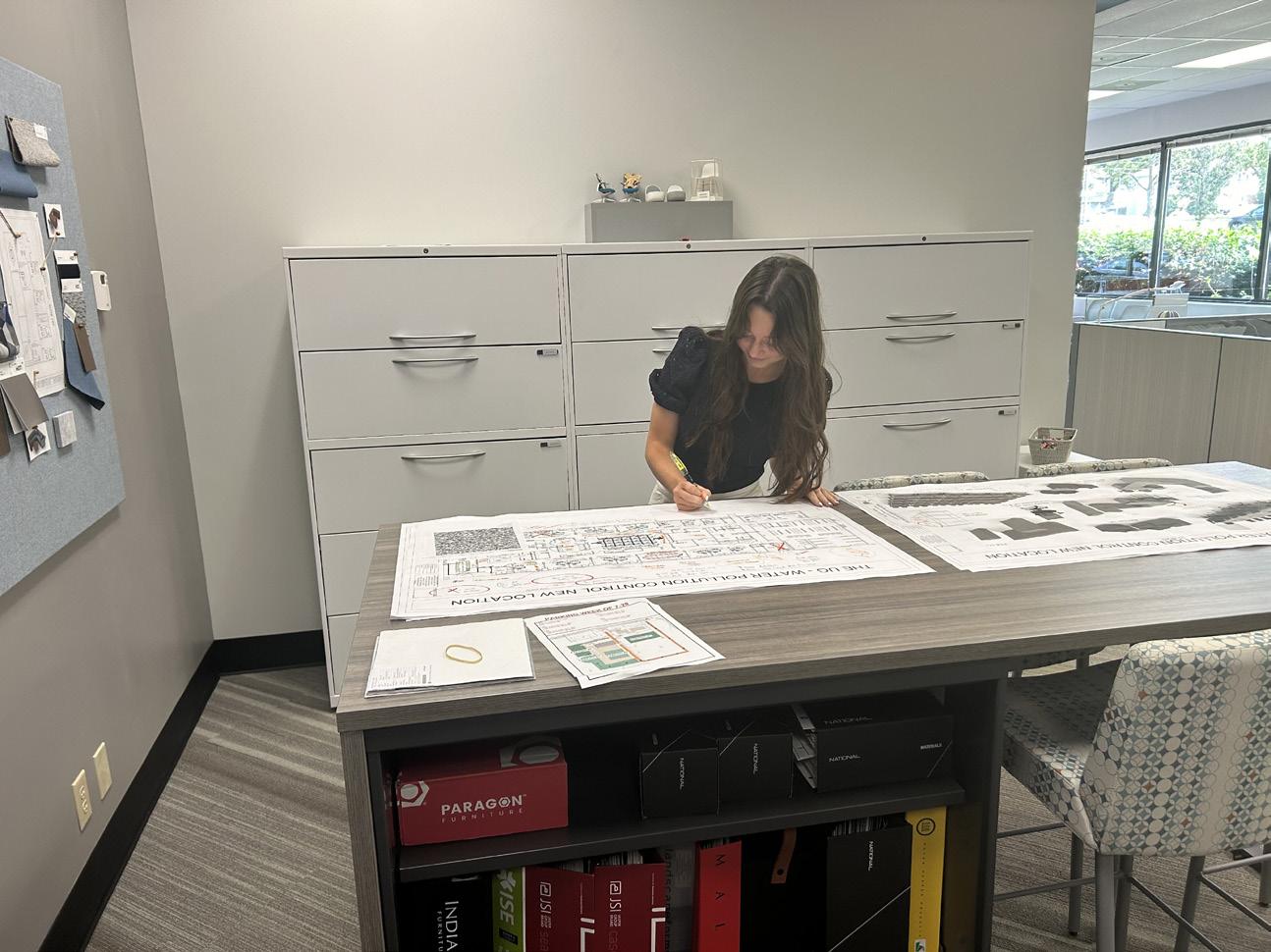 Above: Sammie Skinner, MBI Intern, marking up a floor plan.