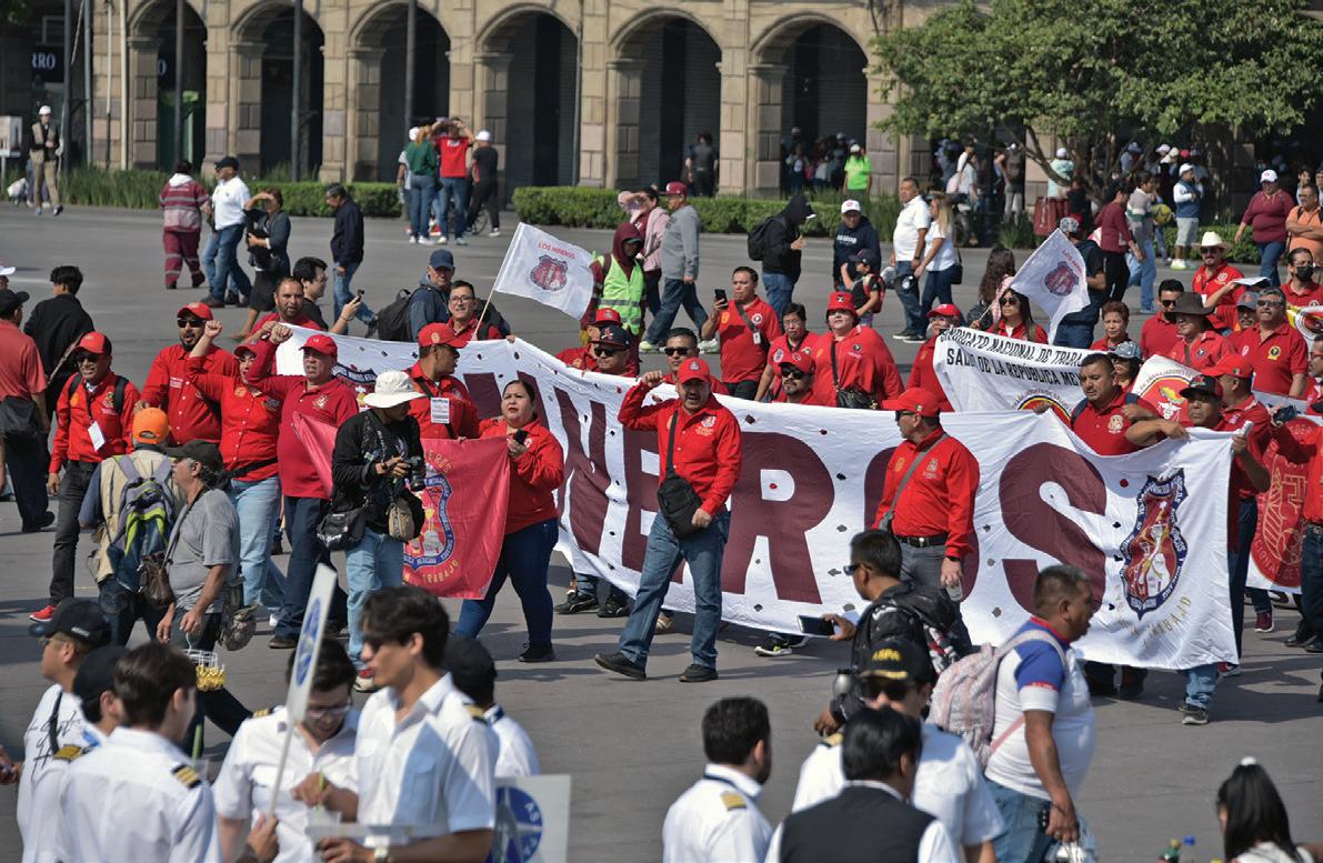 En el escenario, instalado frente a la Catedral Metropolitana, entre otros dirigentes y organizaciones, se ubicaron el Diputado Federal y líder de los mineros, Napoleón Gómez Urrutia, el Secretario General de la CROC, Isaías González Cuevas, el Secretario General de ASPA, Jesús Ortiz, así como líderes de la Confederación Regional Obrera Mexicana (CROM), entre otras. Gómez Urrutia dijo que la manifestación del Día Internacional del Trabajo era una demostra -